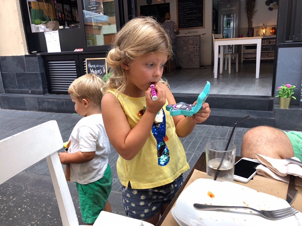 En liten vilostund hemma hos mig innan det var dags för middag på Burger 200 nere på gågatan för att sedan fortsätta till SkandiTapas igen för att lyssna på musik. Det var Maggans man Miguel och hans band som spelade, mycket folk hade samlats där men musiken var lite för häftig för vår smak så vi stannade inte så länge.