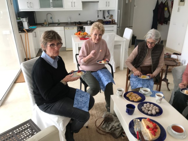Idag samlades vi hemma hos Eva, det var första mötet för i år. Det var också första gången då vi bytt middag mot ”five o’clock tea”. Eva hade gjort en jättegod cheesecake. Vi saknade Lissy som pga sitt nyopererade ben inte kunde komma, men Birgitta hade med sig en väninna, Eva.
