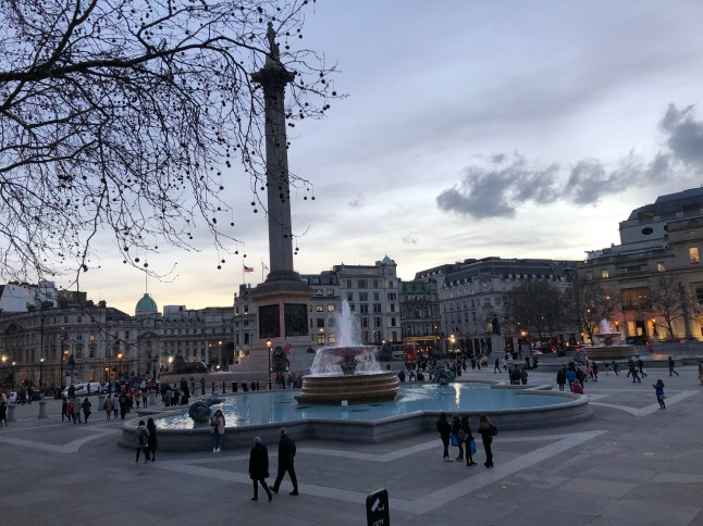 Idag tog jag tunnelbanan in till Bond Street, därifrån gick jag till Oxford Circus med besök på några varuhus, bara för att titta och värma mig. Gick Regent Street till Trafalgar Square och vidare till Covent Garden.