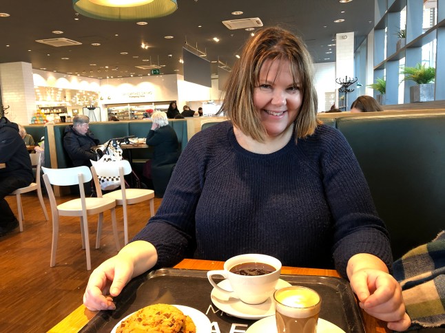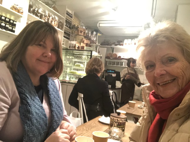 Sedan gick jag till Bageriet där jag stämt träff med Maria. Vi skulle prova deras semlor. Men…. de hade sålt slut både semlor och kanelbullar så vi tog en chokladboll till kaffet.