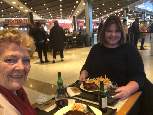 I söndags var det dags för hemresa. Maria och jag åt lunch på Westfields. Vi hade tänkt avsluta som vi började, alltså med en lunch på Fridays, men där var fullsatt så vi gick till en annan restaurang för vi hade inte lust att vänta. En kaffe på M&S hann vi också med innan det var dags att ta bussen till flygplatsen.