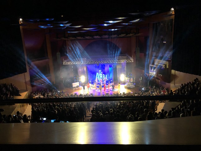 Lördag var det en föreställning på Alfredo Kraus med musik av Abba. Ljudnivån i högsta laget, men härligt att höra deras musik, både kända och okända låtar. Vi tog ett glas vin med Anette och hennes man innaan föreställningen