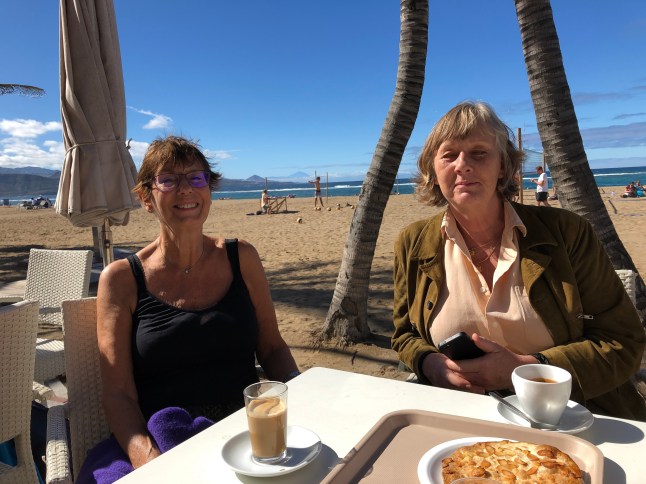 Lite senare en promenad längs Canteras för att beundra solnedgången, man kunde se hela Tenerife trots en aning calima. Promenaden avslutades på SkandiTapas där vi tog ett glas vin och en laxrulle innan det var dags för Ria att ta bussen hem.