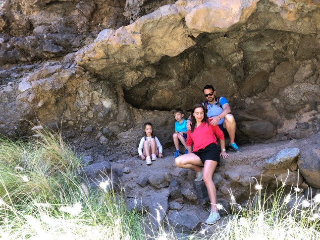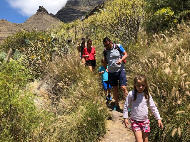 I tisdags gjorde vi en utflykt till Charco Azul som ligger ungefär mellan Agaete och La Aldea. Det stod i informationen att det var en lätt vandring, medan Roque Nublo skulle vara medelsvår. Helt missvisande enligt min mening, det borde stå tvärtom. Jag hade aldrig klarat det hela utan Thomas hjälp. Det skulle enligt barägaren där vi parkerade och tog en kaffe ta en halvtimme upp, för oss tog det en dryg timme.
