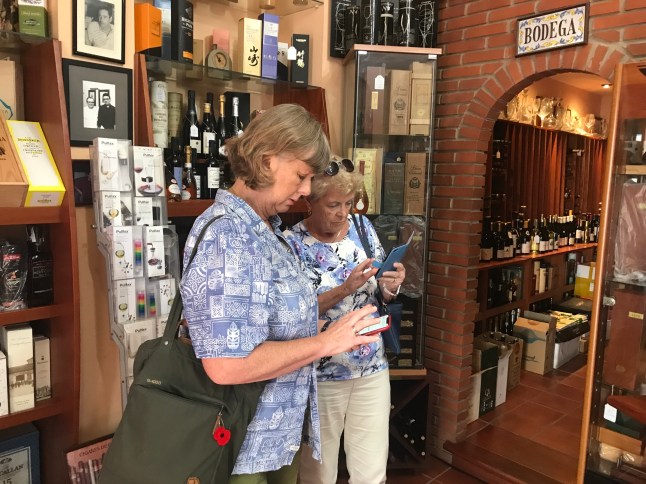 Lunch med Eva och Ria på restaurangen Que Leche på en tvärgata till Triana samt ett besök i en vinbutik. Men de hade inte det vin vi letade efter.