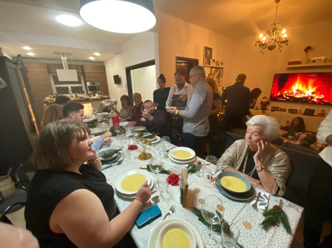 På förmiddagen en promenad i det fina vädret och en lätt lunch på SkandiTapas innan det var dags att samlas hemma hos Patrik. Nästan hela Desirees familj kom, vi var 17 vuxna och 5 barn. Till förrätt hade Patrik lagat Ingrids goda fisksoppa som var mycket uppskattad och även den svenska julmaten gick åt som smör i ☀️.