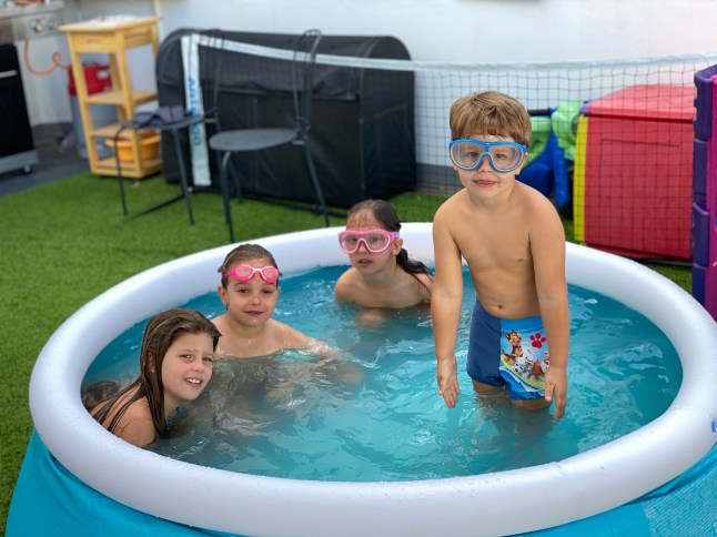 En dag fick barnen besök av sina kusiner och Desirees syskon så det blev både bad och god mat på terrassen.