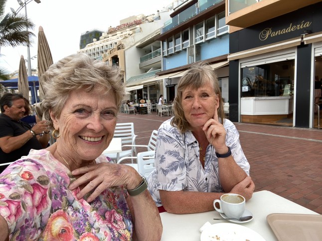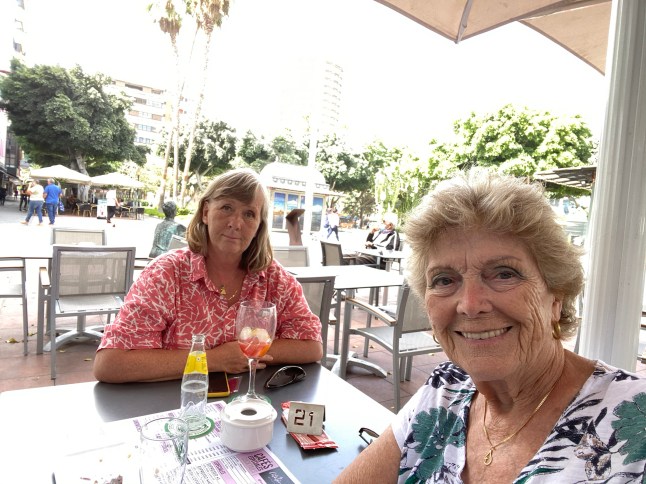 Idag fyllde Daniela 8 år, men kalaset blev inställt på grund av sjukdom. Jag tog en kaffe i parken med Ria innan hon fortsatte hem till Vecindario. I kväll var det underhållning på gågatan nedanför mina fönster av mycket duktiga killar. Tyvärr var det svårt att ffå en bra bild då parasollerna var i vägen.
