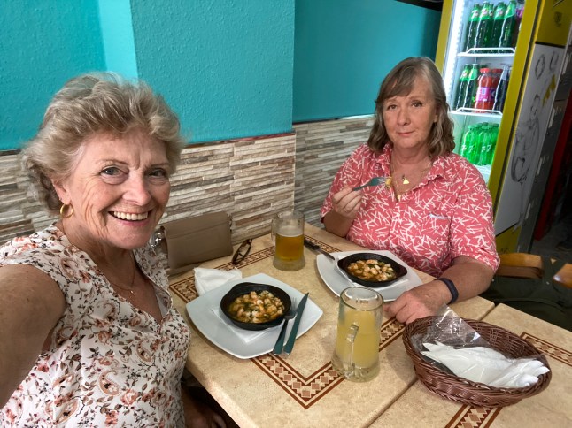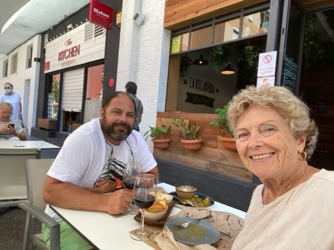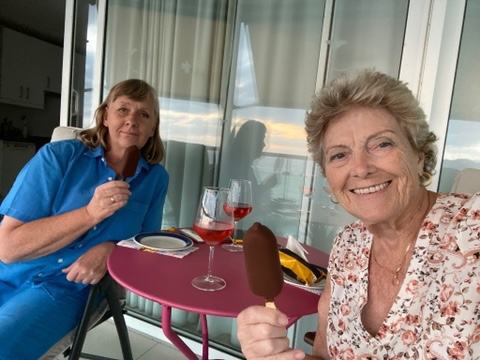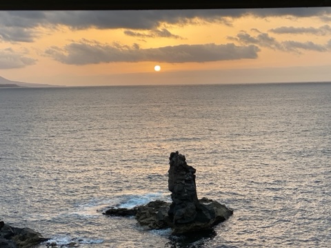 Det har blivit många glas vin på Rias balkong i väntan på en vacker solnedgång. Tyvärr har det alltid kommit moln i vägen. Detta är väl det bästa vi sett, sedan försvann den bakom molnen.