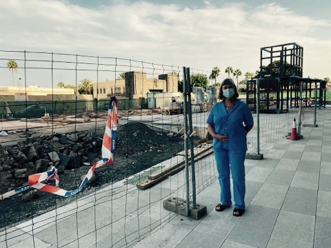 Efter kaffet tog vi en promenad längs hamnpromenaden och tog ett foto på det stora jobbet som är på gång vid Mesa y Lopez’s slut framför marinen där de tagit ner den stora flaggstången. Ska bli spännande att se vad de tänker göra där.