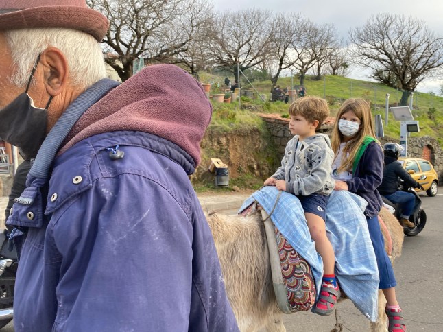 I Cruz de Tejeda var det också fullt överallt, men barnen fick en ridtur på en åsna innan vi återvände hem.