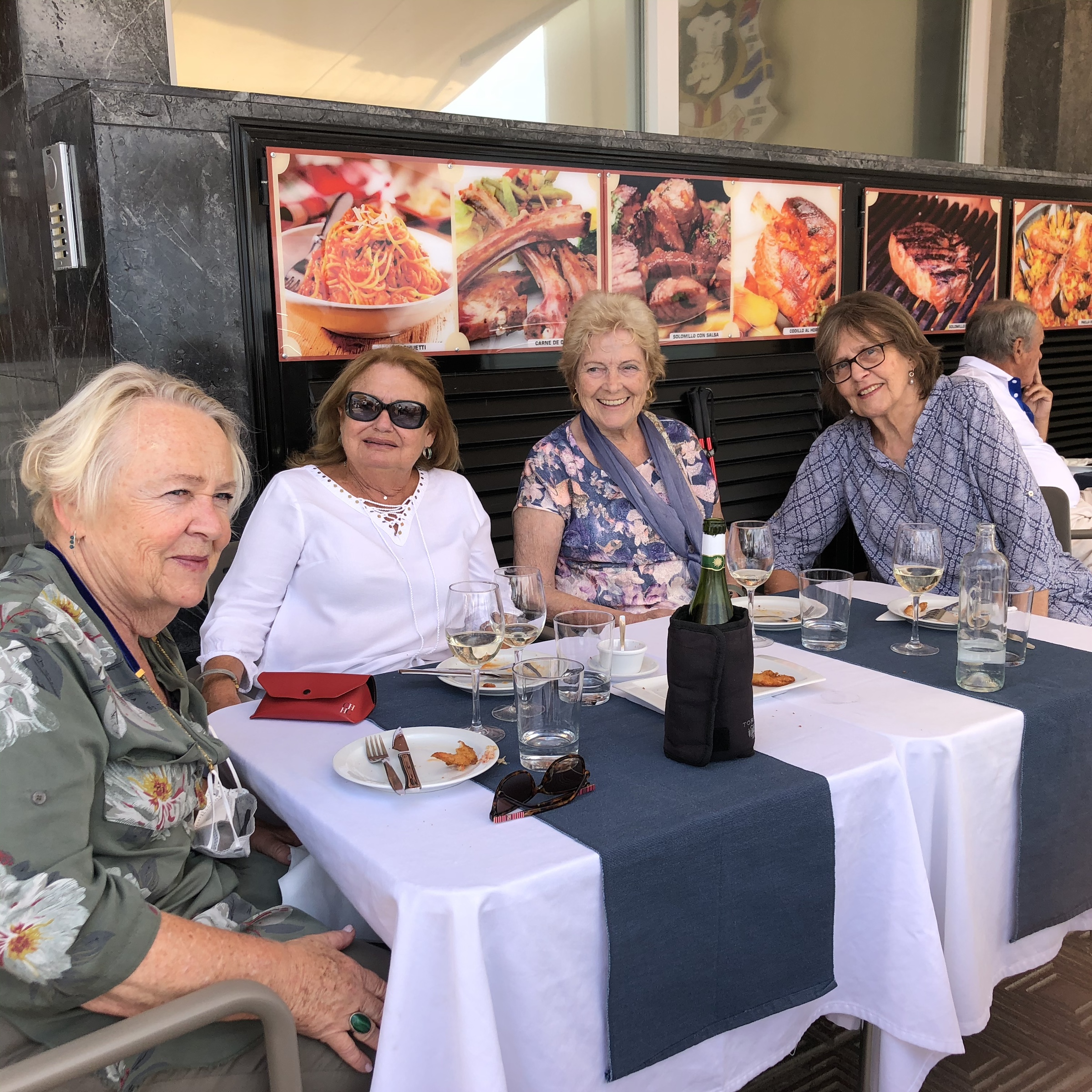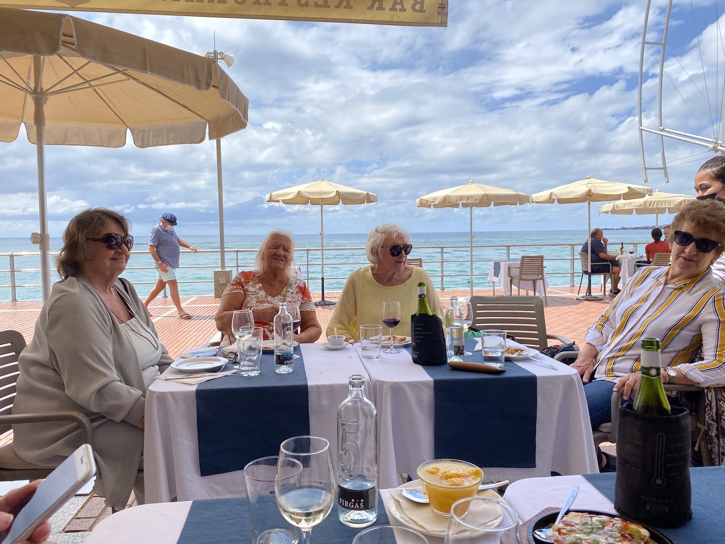 Torsdagen blev fullbokad. Först en lunch på Den skrattande Grisen som numera ägs av en kines. God mat och mycket prat, vi var åtta stycken som satt vid två bord. Medan vi satt där kom det en ordentlig regnskur.