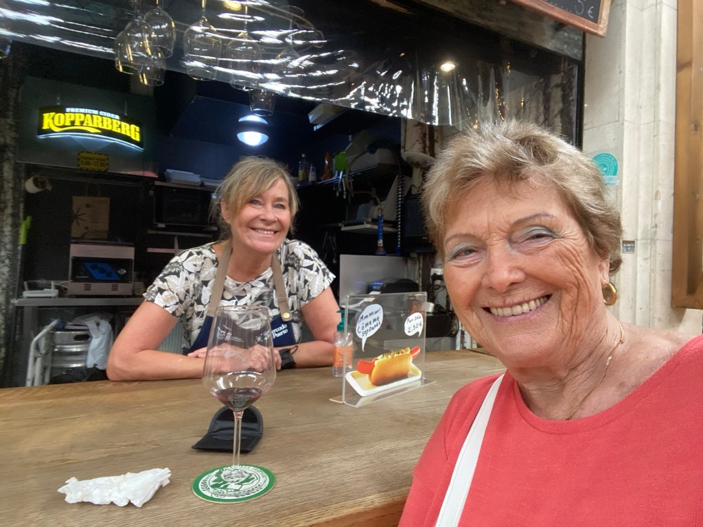 En promenad till Mercado del Puerto där jag åt lunch hos Maggan. Ett glas vin och en laxrulle. Därifrån tog jag bussen hem till Patrik och lekte en stund med barnen innan de skulle gå på bio med Desiree. Patrik körde mig hem och vi tog en kaffe på Mesa y Lopez.