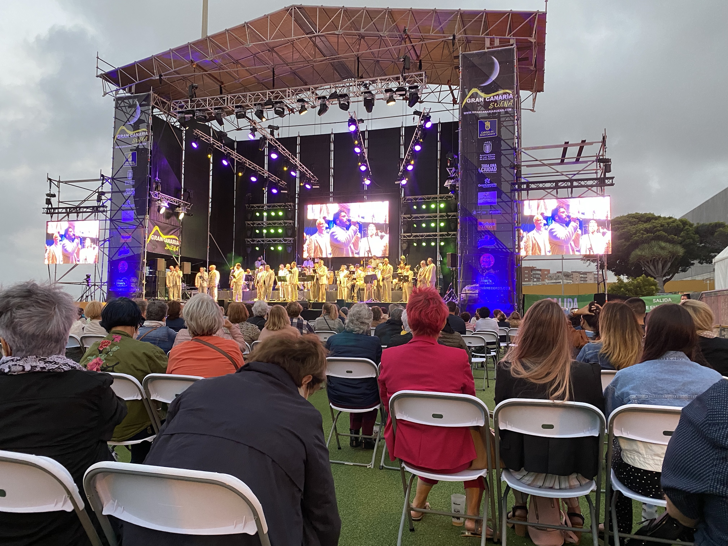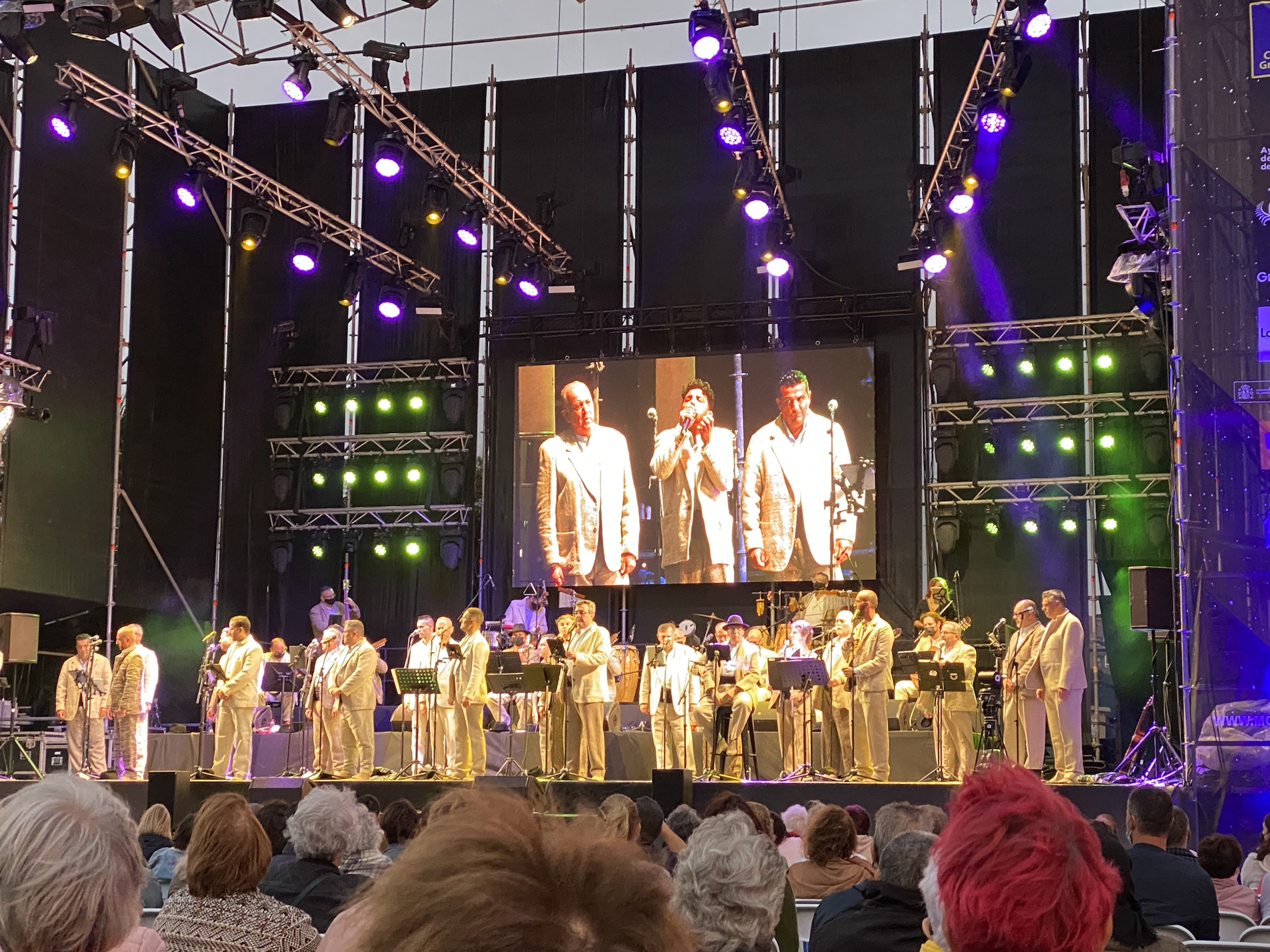 Ikväll var jag med Ria på en konsert med Los Gofiones. Det var Rias födelsedagspresent till mig. Det var kallt och blåsigt men omtänksam som Ria är hade hon tagit med kuddar att sitta på, det värmde gott om stjärten, och två extra schalar varav jag fick låna den ena.