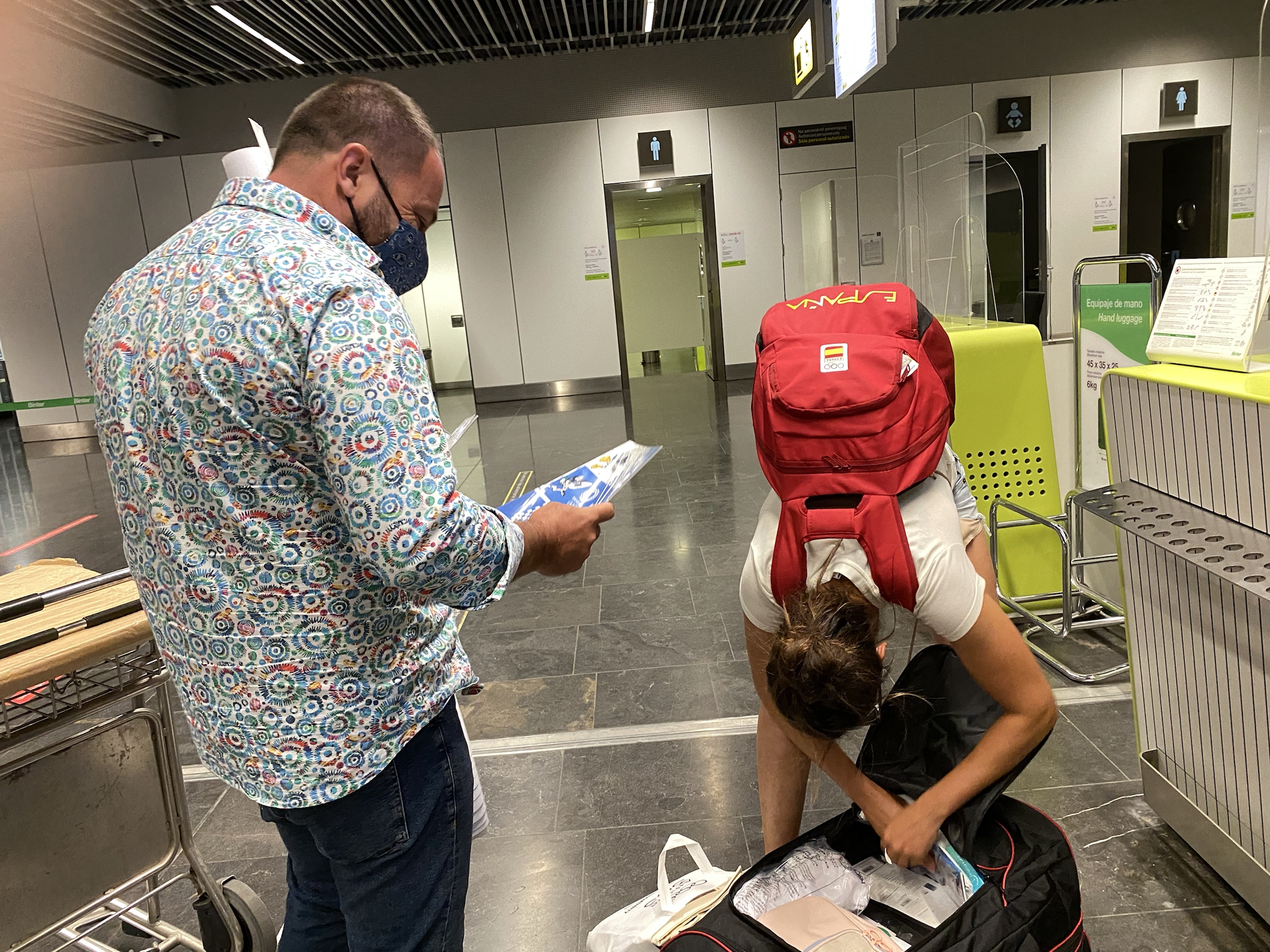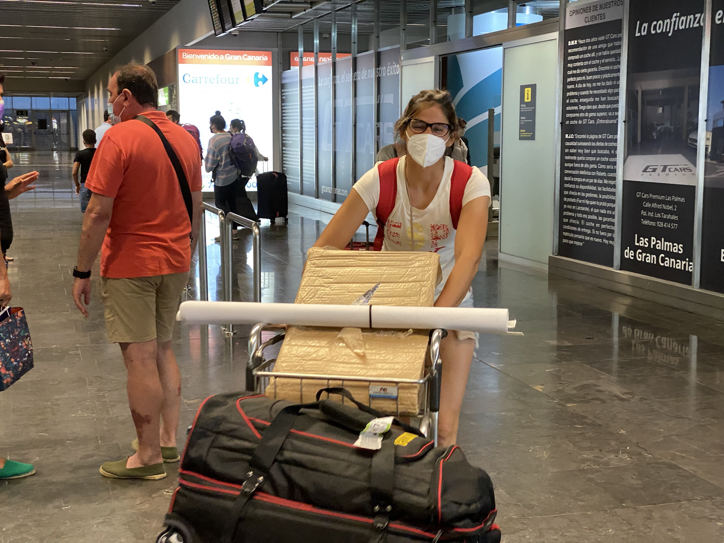 I kväll åkte Patrik och jag ut till flygplatsen för att ta emot Patricia som kom från Tokio och mellanlandade här för att fortsätta till Lanzarote. Hon hade jättemycket bagage så vi kunde hjälpa henne då hon måste checka in på nytt.