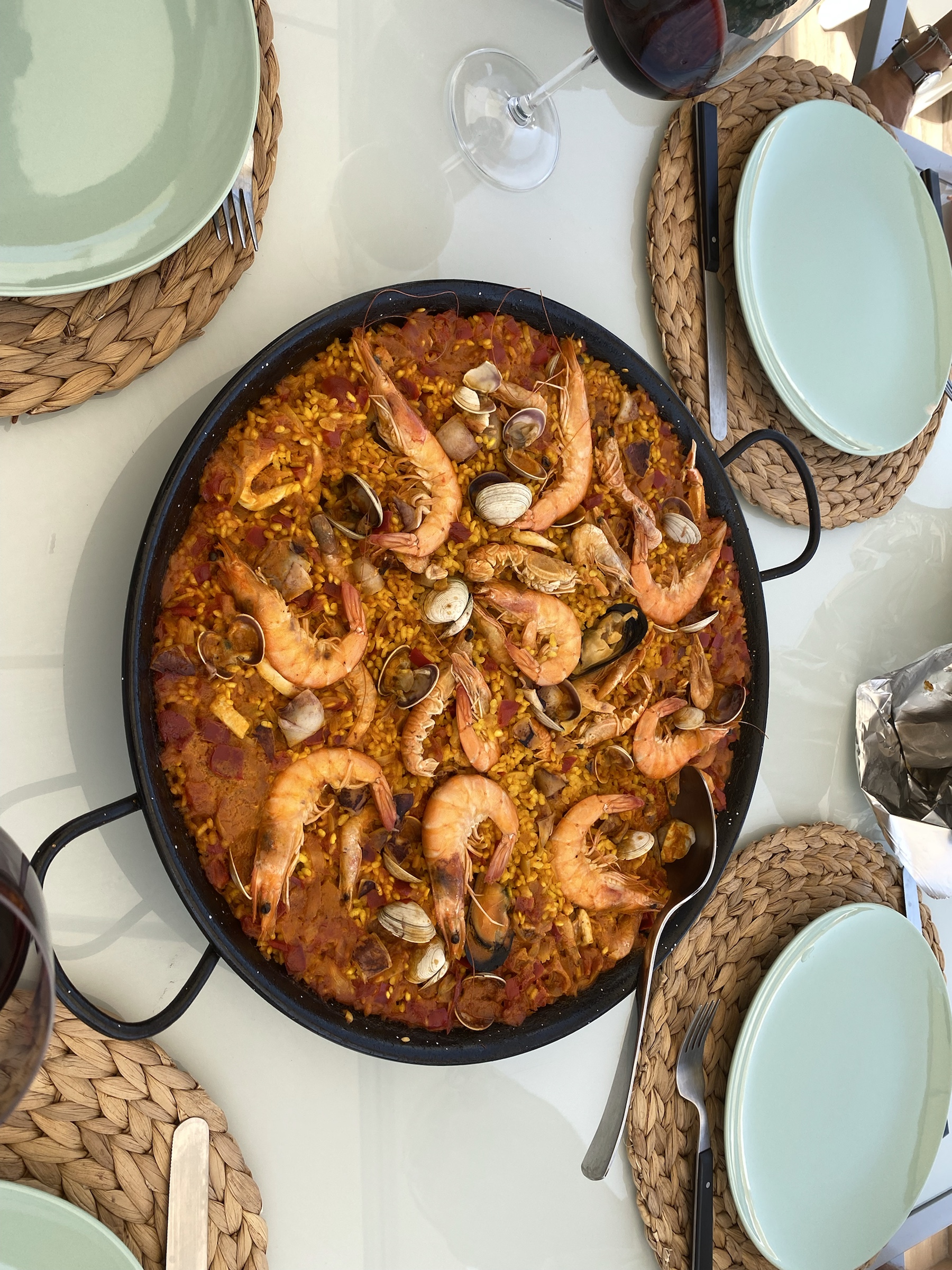 I går kom ett barnbarn och hennes man till stan för ett läkarbesök. Vi hann med en snabbb lunch hemma hos Patrik och Desiree. Patrik hade tillagat en jättegod paella och vi hade mycket att prata om så tiden gick alltför fort.