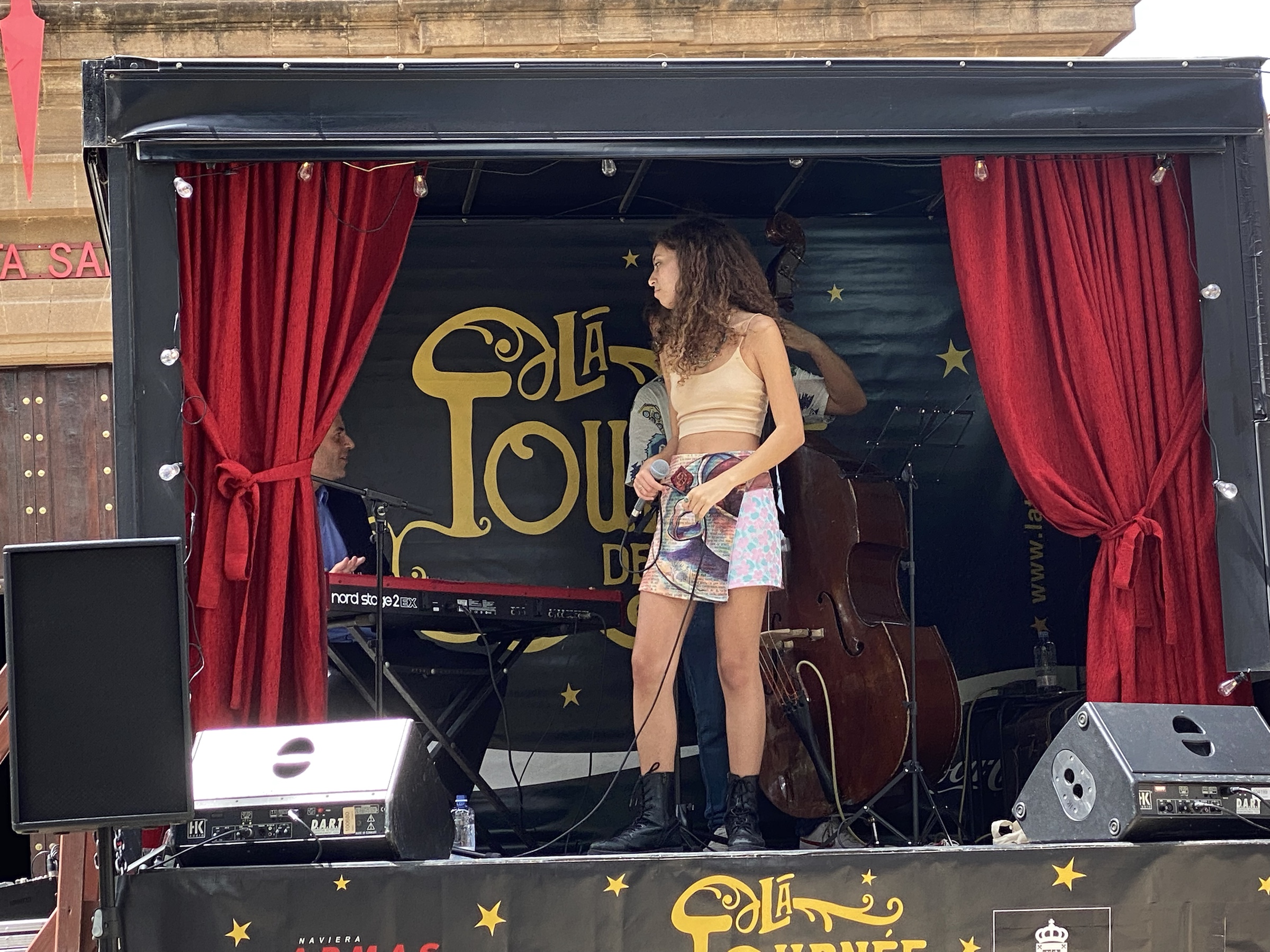 På torget i Galdar höll Gabriela Suarez en konsert. Det stod en vakt vid varje ingång, biljetterna var slutsålda men de flesta stolarna var tomma, så en vakt var snäll och släppte in oss.