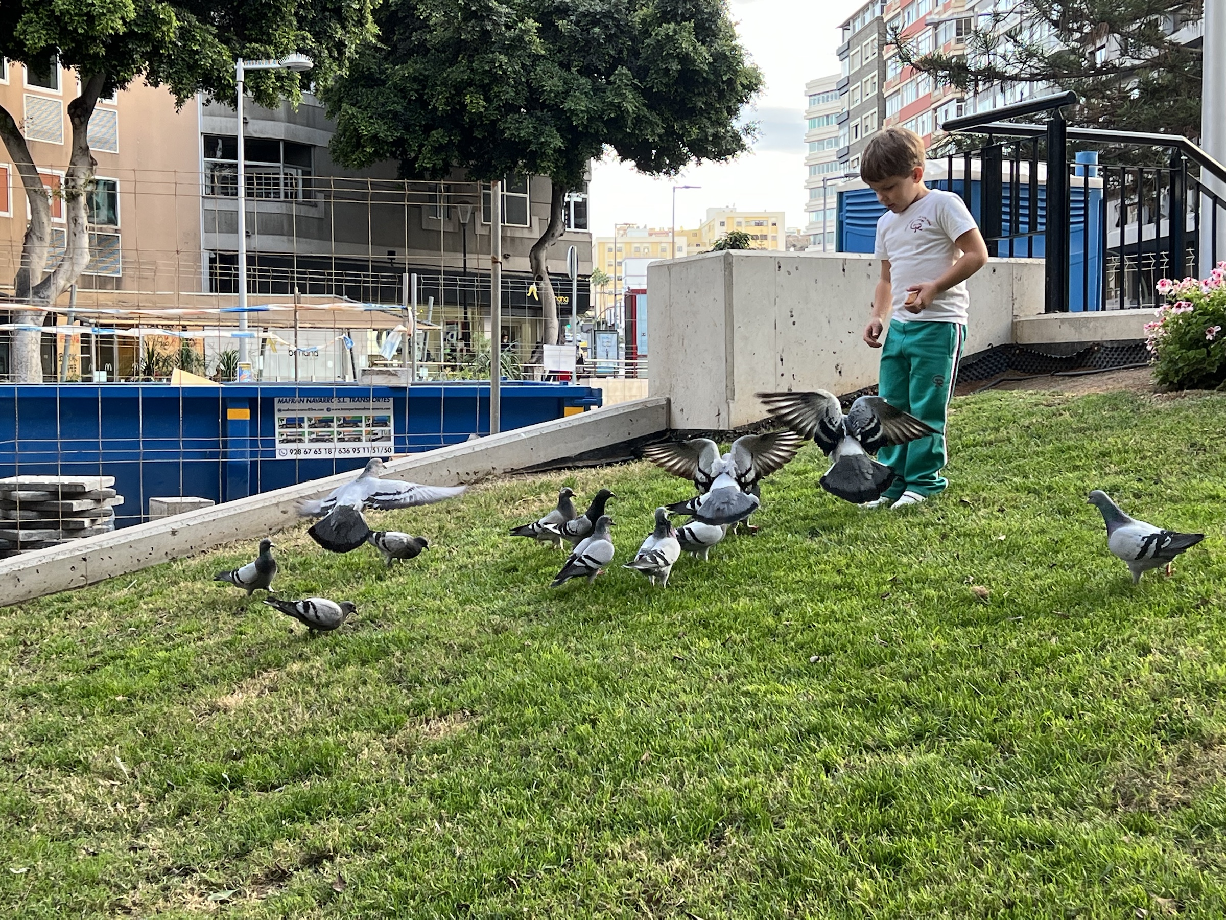 Nu är julen slut, slut, slut….Medan vi tog en fika på plaza España, passade Nico på att mata duvorna. Lunch hos Eva. Alla onsdagar efter vanliga skolan åker jag med Daniela till svensklektionen med Lotta. Här är hon utanför skolan med sin enda klasskamrat.