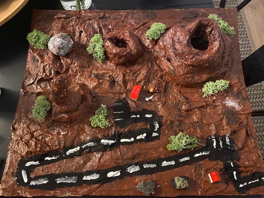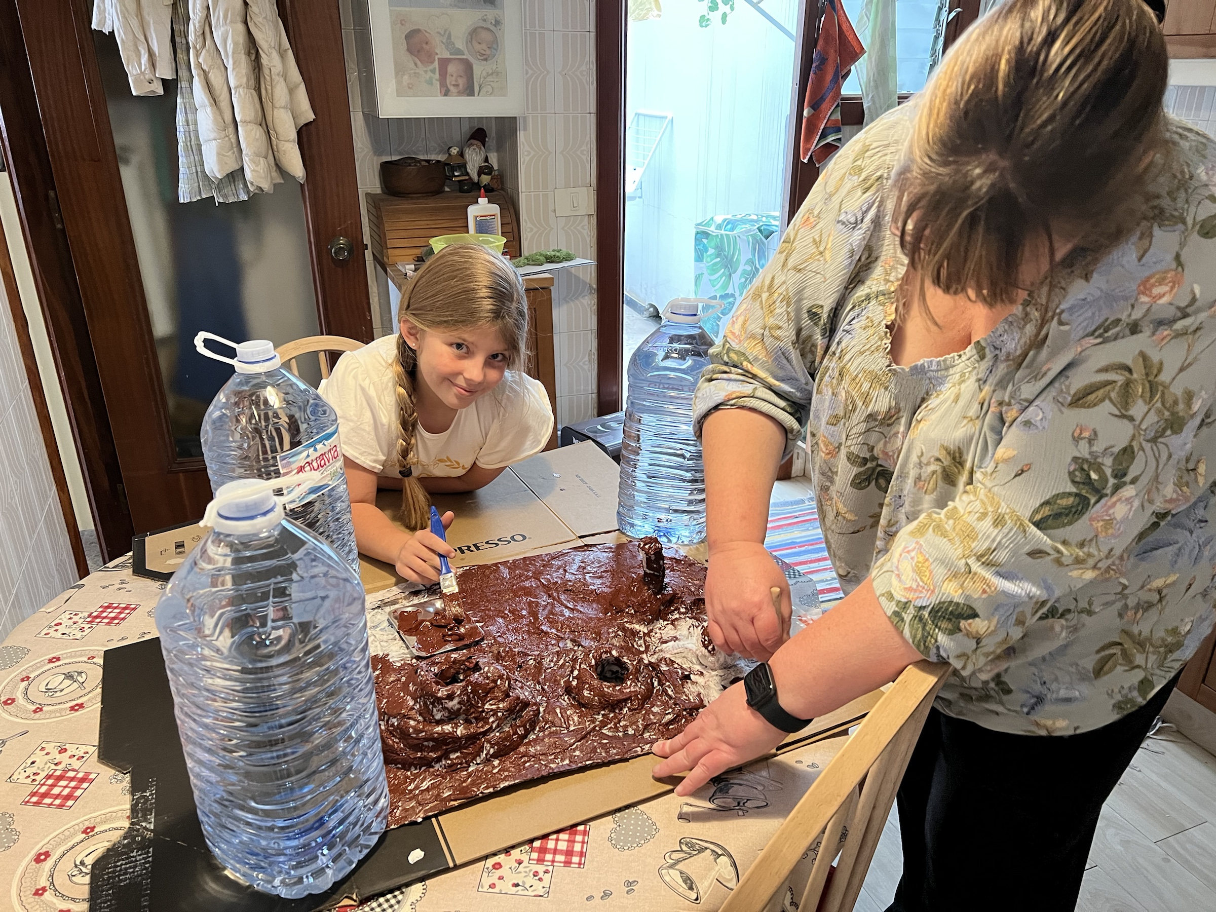 Bästa sättet att få Nico att göra sina läxor är att han får sitta bredvid Maria medan hon försöker jobba. Här får Daniela hjälp med läxorna. Hon skulle göra en modell av Timanfaya och här är det slutliga resultatet.