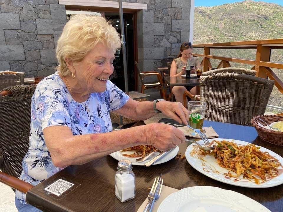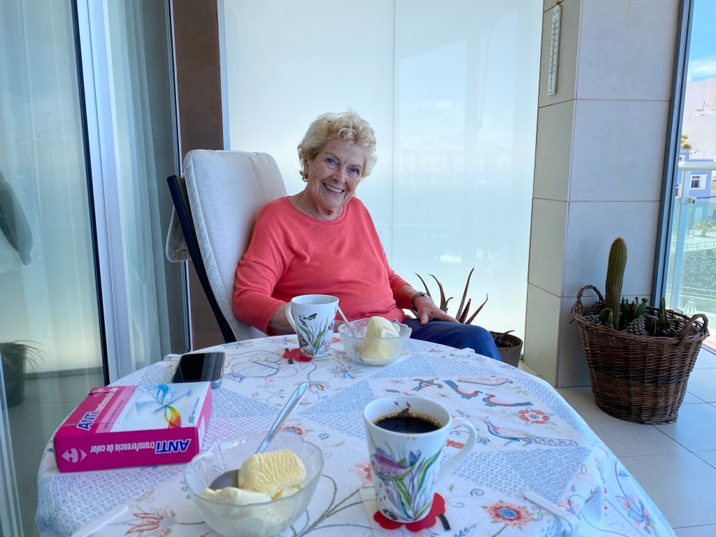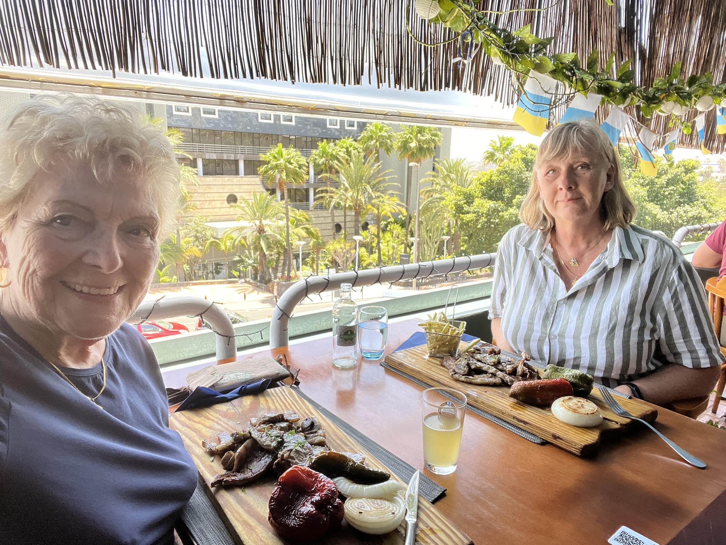 Därifrån gick jag hem till Ria som bjöd mig på lunch. På vägen dit såg jag lite av kortegen med vagnar med frukt och blomster samt flera grupper som spelade och sjöng kanarisk folkmusik.
