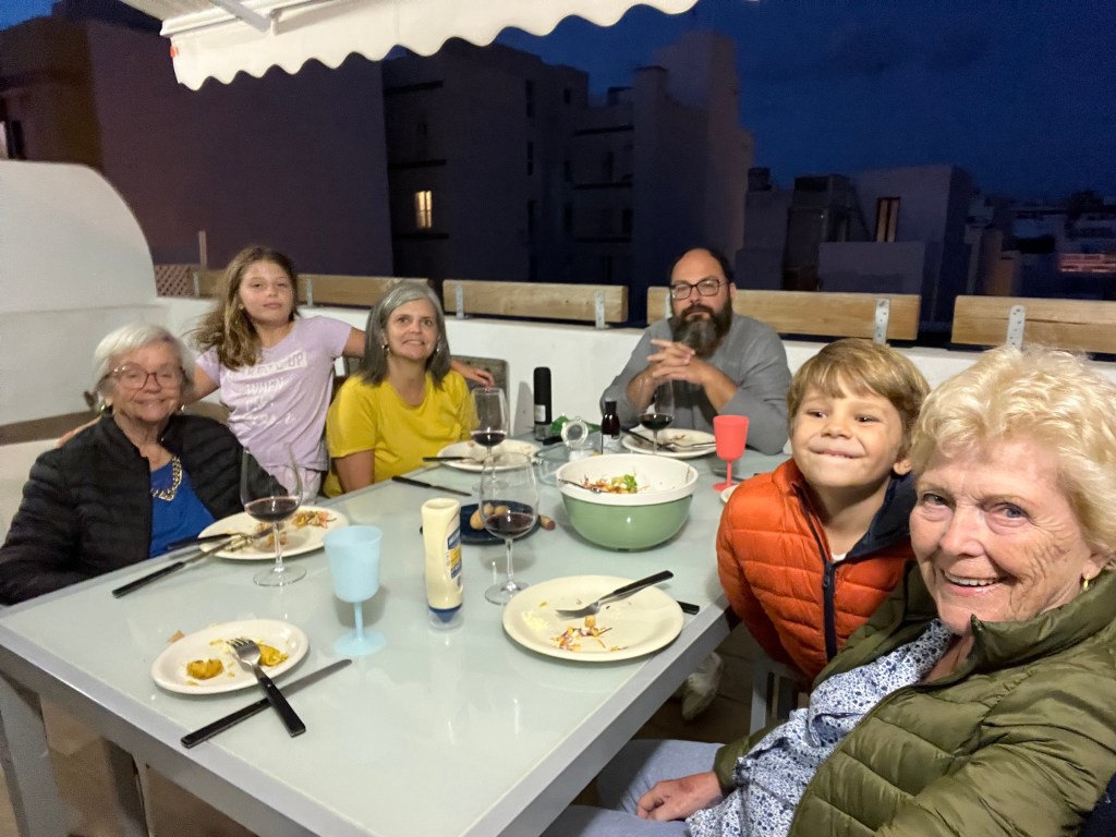 Lolo kom och hälsade på i förmiddags och vi åkte tillsammans till Plaza del Pilar där Patrik hade flera stånd för barnen samt en grupp som sjöng kanarisk folkmusik.