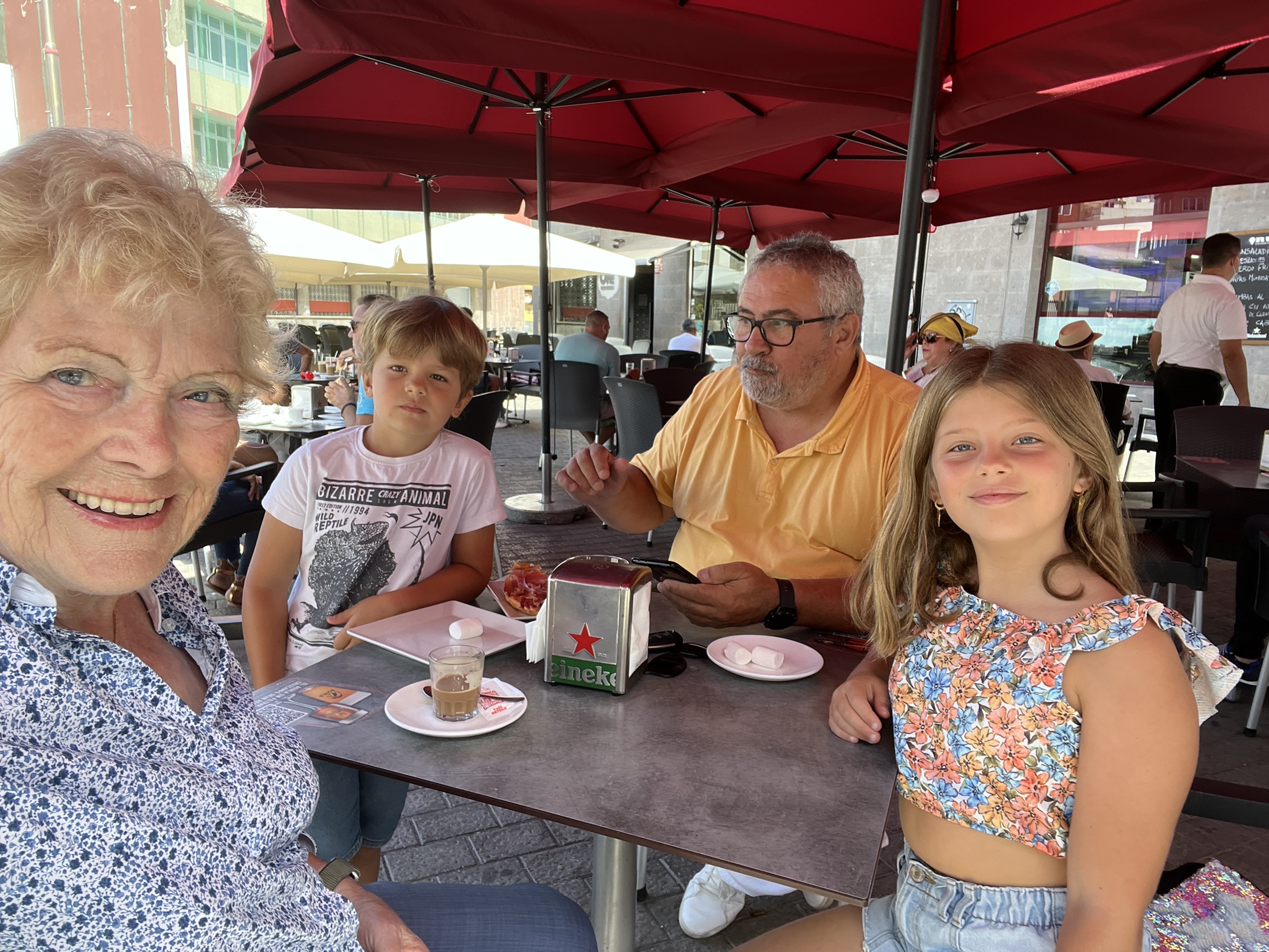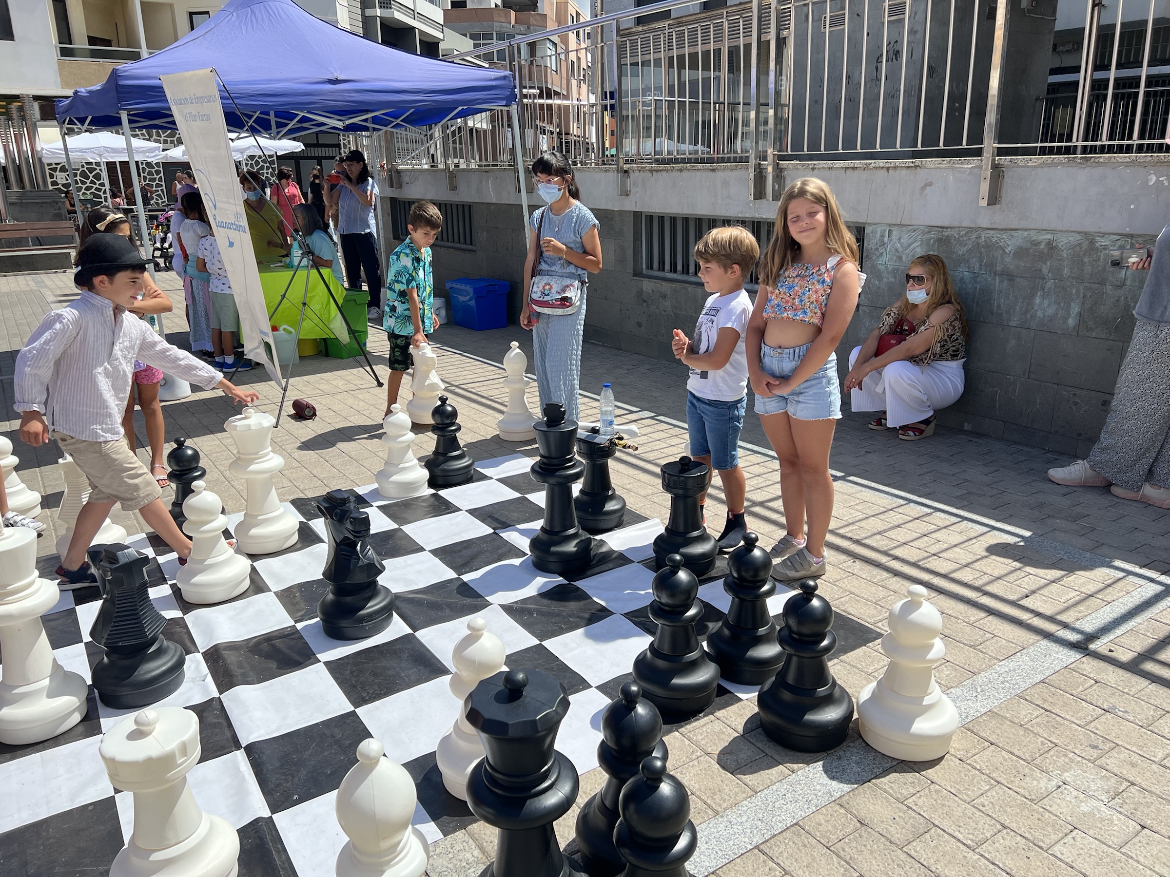 Lolo kom och hälsade på i förmiddags och vi åkte tillsammans till Plaza del Pilar där Patrik hade flera stånd för barnen samt en grupp som sjöng kanarisk folkmusik.