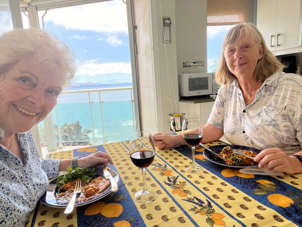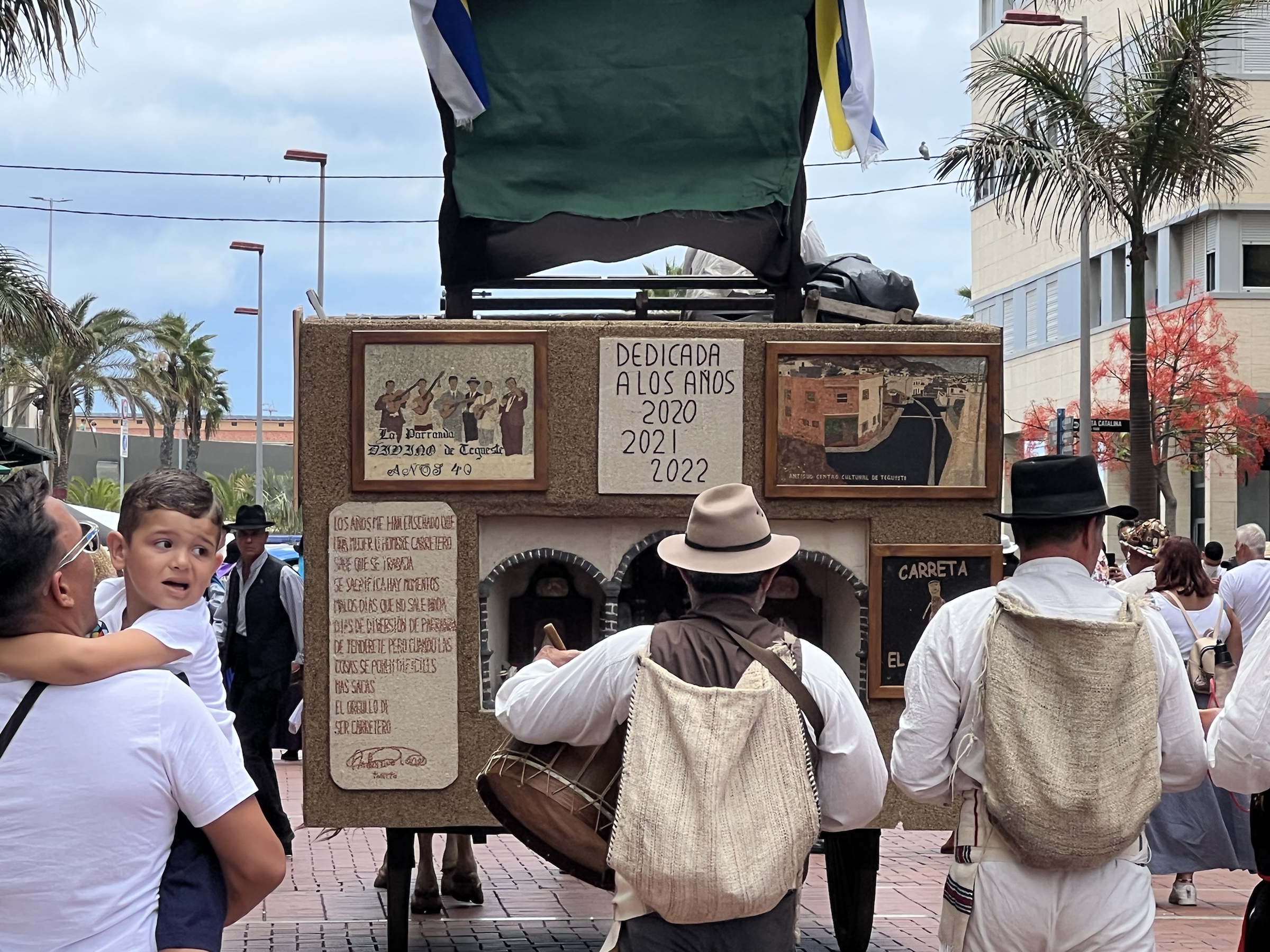 Därifrån gick jag hem till Ria som bjöd mig på lunch. På vägen dit såg jag lite av kortegen med vagnar med frukt och blomster samt flera grupper som spelade och sjöng kanarisk folkmusik.