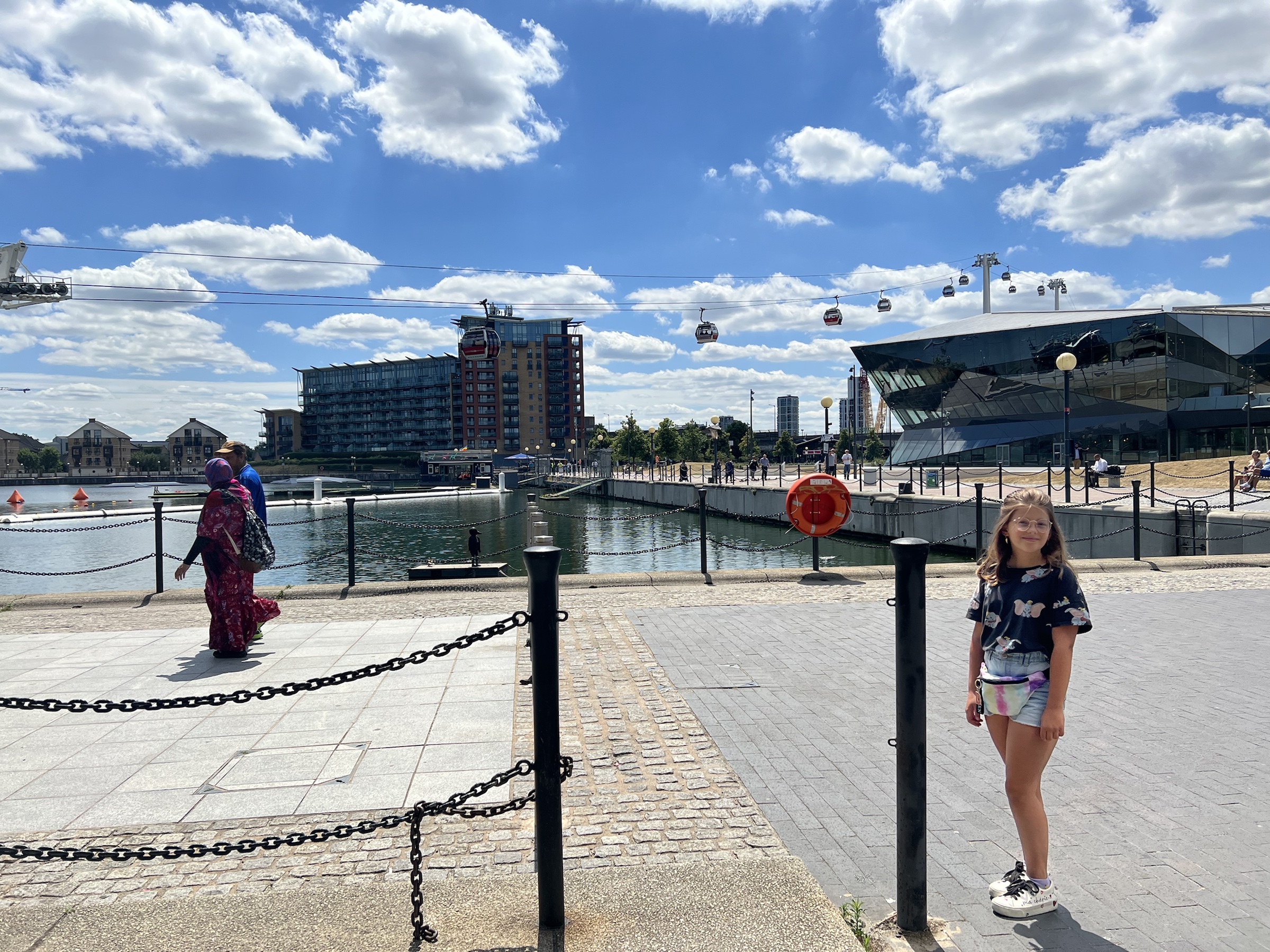 Idag har det mest handlat om Themsen. Vi har flugit över, åkt på och gått under Themsen. Vi tog tunnelbanan till linbanan som går över floden till O2.