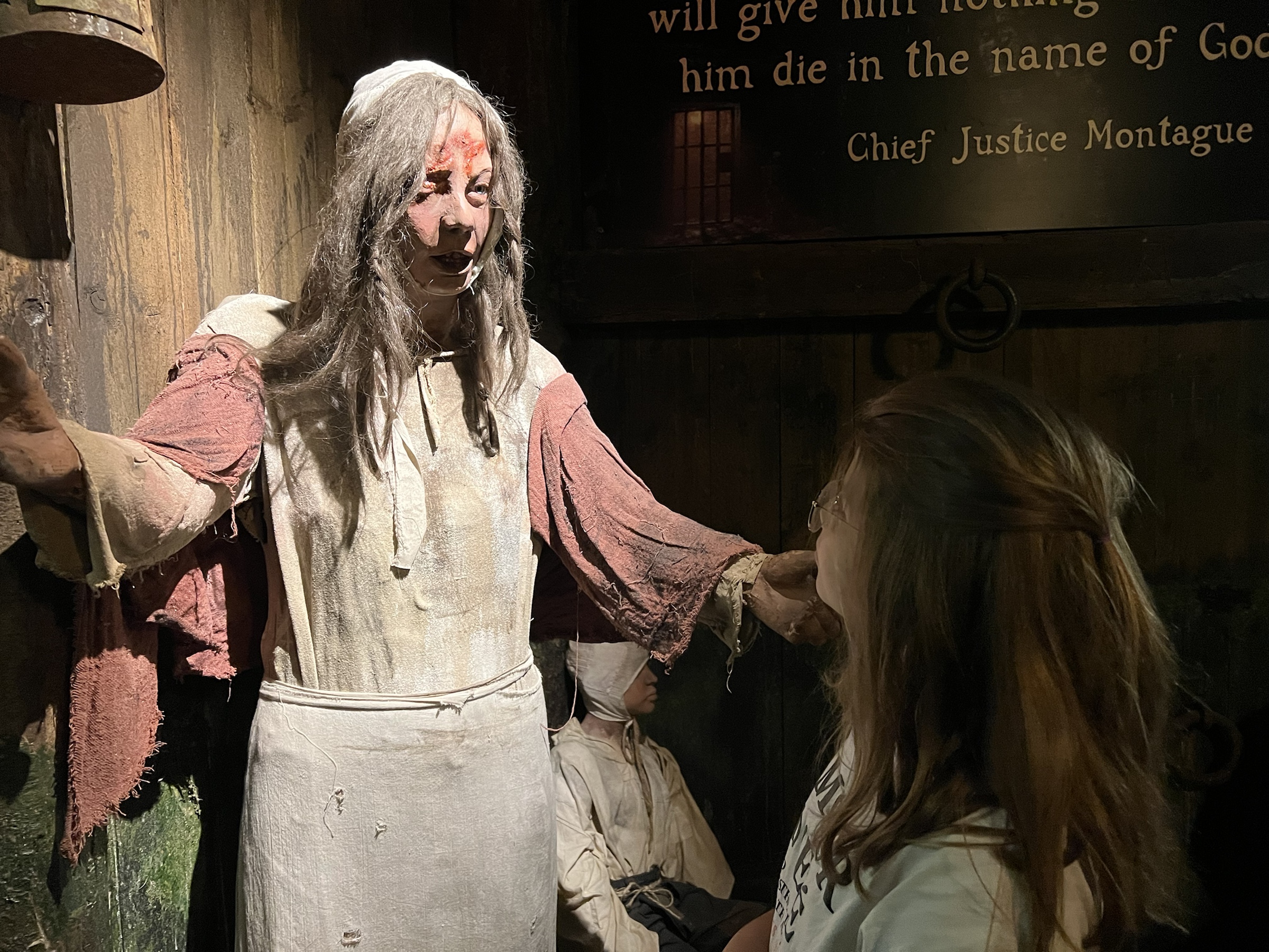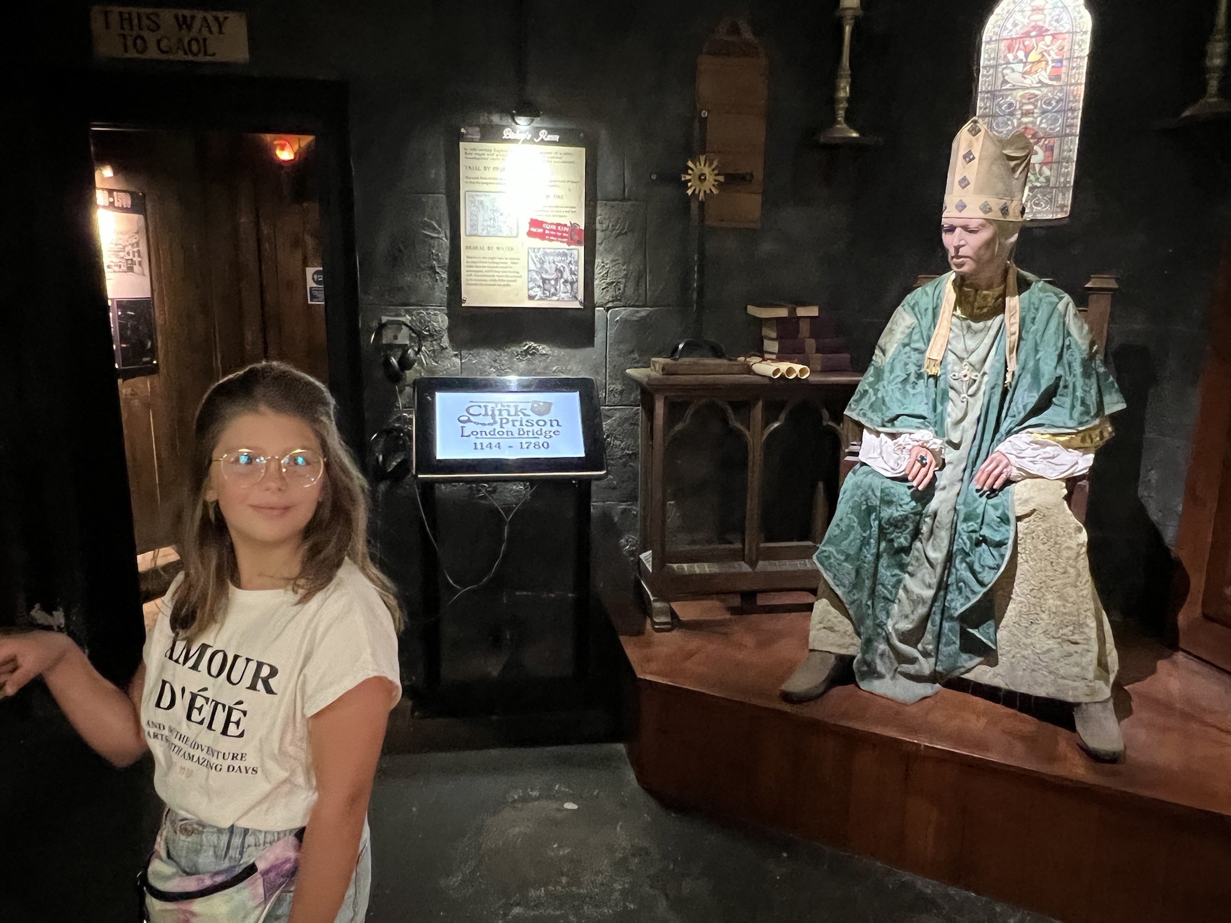 Idag var det museer som gällde. Först gick vi till Clink prison. Det Daniela tyckte var roligast där var att om kunde räkna alla råttorna så fick man något vid utgången. Hon missade bara två så hon fick en klubba.