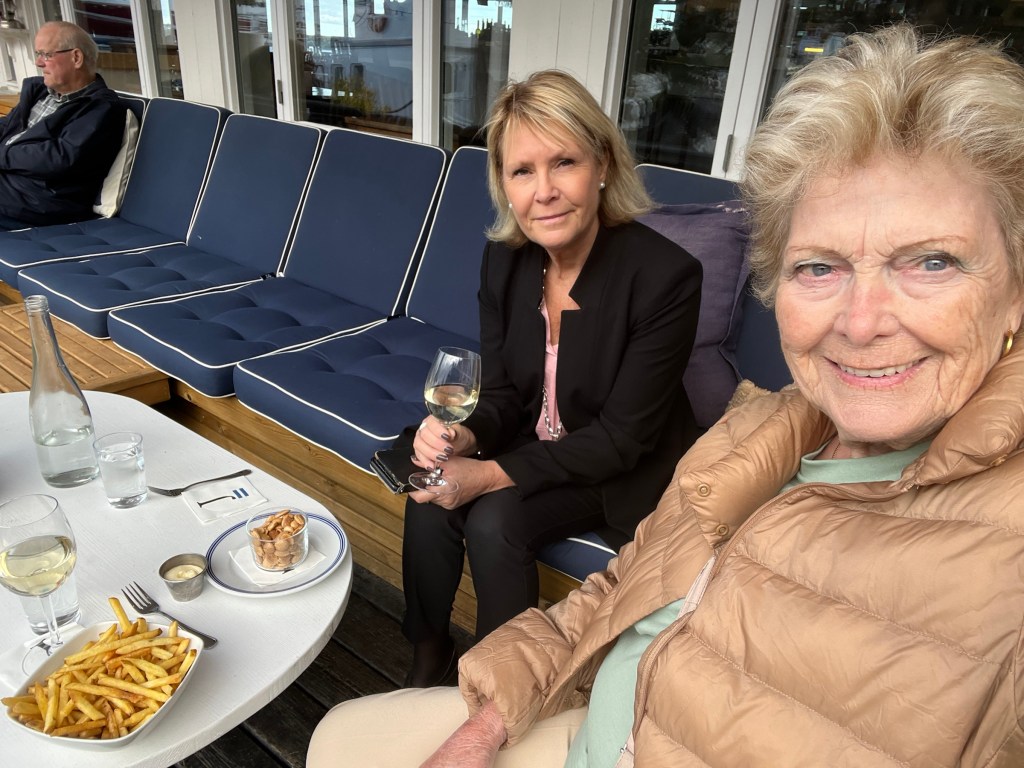 Resan upp med tåget gick bra, Eva mötte mig på centralen och väl hemma hos henne tog vi ett glas vin och tittade på TV.