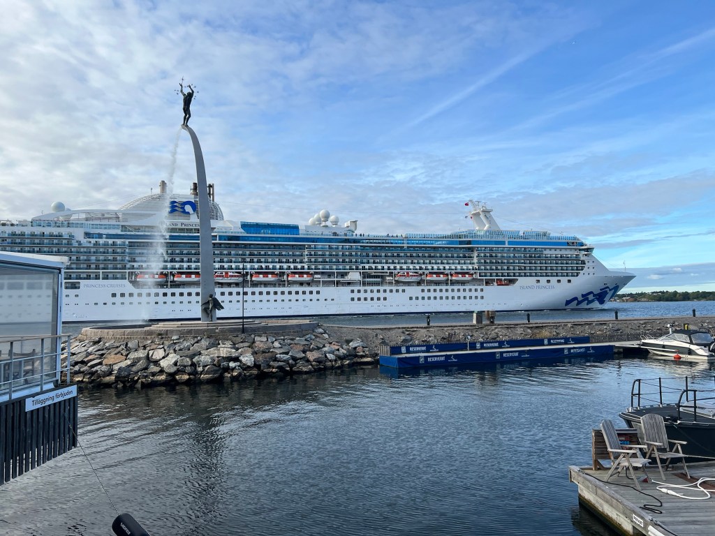 Jag tog bussen till Nacka och mötte Eva efter jobbet. Vi gick ner till havet och satt där med lite snacks och ett glas vin och tittade på Millesstatyn och alla båtarna innan vi tog båten in till stan.