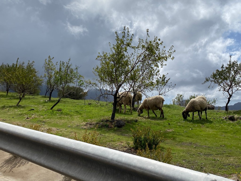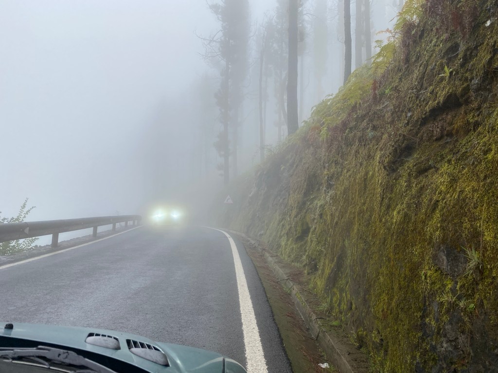 I torsdags gjorde Eva, Ria och jag en utflykt till Tejeda. När vi kommit en bit på väg kom vi rakt in i molnen, man kunde knappt se vägen framför sig. Men överallt var det grönt efter allt regn.