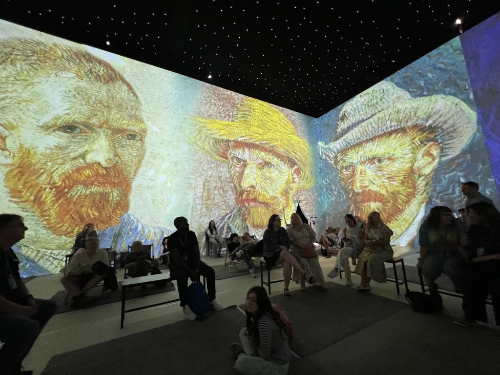 Idag var vi på en helt fantastisk van Gogh-utställning. Förutom hans verk fanns det ett rum med videobilder på både väggar och golv, ett annat rum där barnen kunde måla van Goghs verk samt ett annat rum där man fick ett par virtuella glasögon och fick göra en resa genom flera av hans verk.