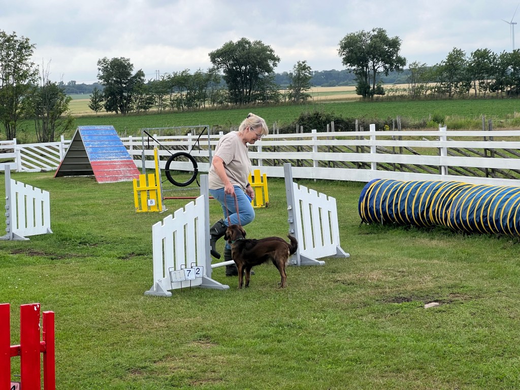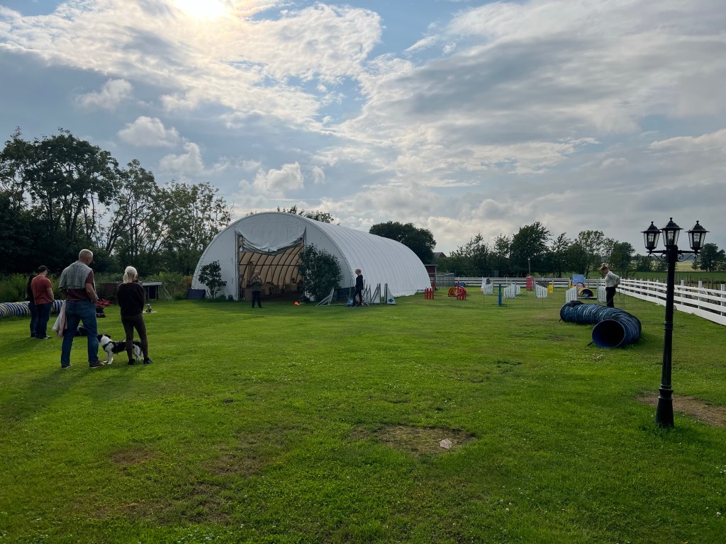 Det regnade hela dagen, men klarnade till kvällen då vi skulle på hundkurs med Mariannes hund Sally. Det var en jättefin gård med många djur