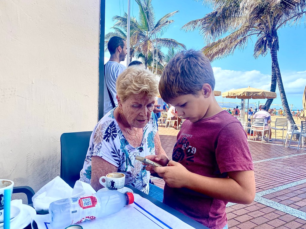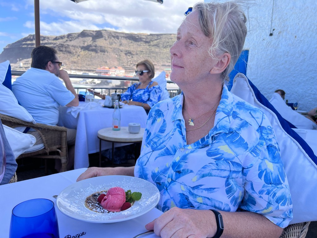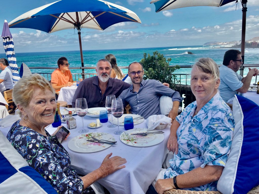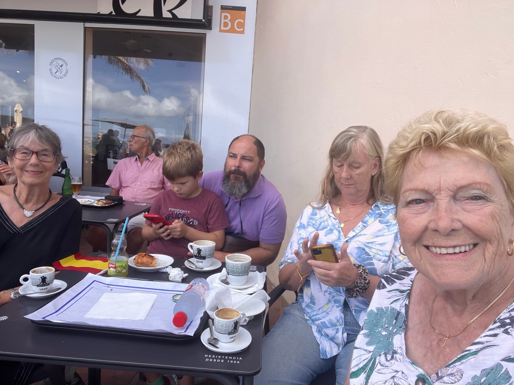 Idag var det flyguppvisning på Canteras. Jag tror hela Las Palmas var där idag, det var väldigt svårt att ta si fram. Vi började med fika’ Eva och Ria hade varit där i god tid för att få ett bord, det var fullsatt överallt. Anneli med barnbarn träffade vi.