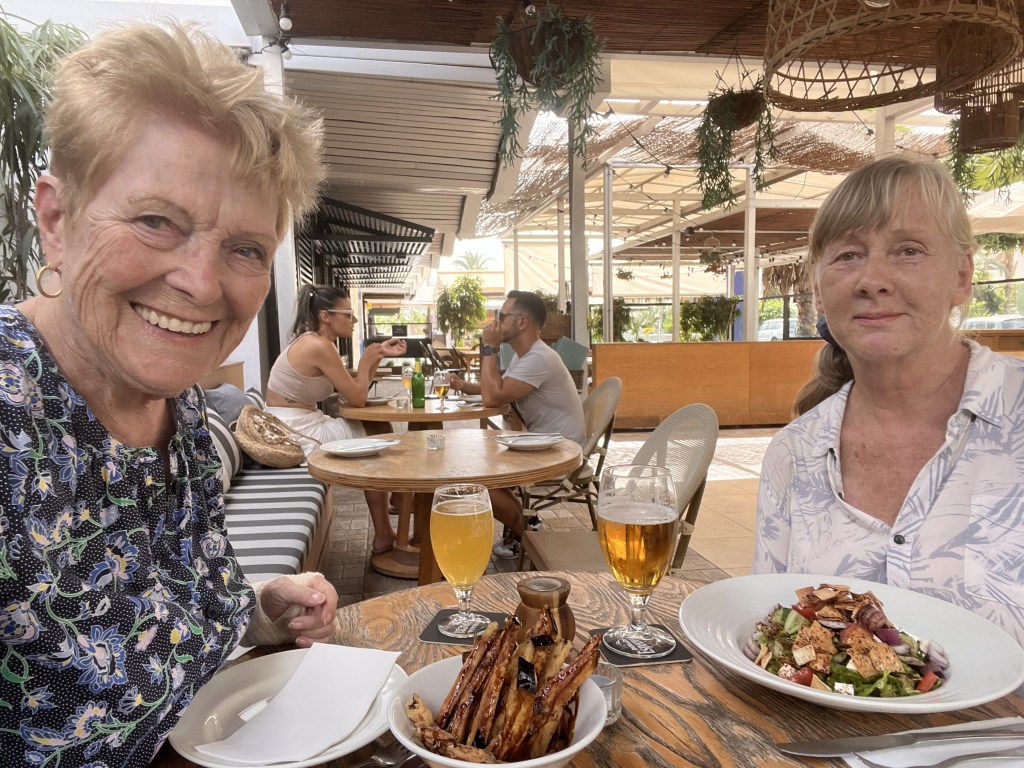 Idag på väg ner till syd för att besöka Frederick, plockade jag upp Ria. Hon väntade medan jag blev klippt och därefter besökte vi en kompis som ska hjälpa mig att sälja min bil. Därefter åt vi en god lunch på Allende. Värmen är olidlig så när jag kom hem tog jag av mig min dyblöta klänning och tog på mig det svalaste jag hittade och åkte upp till Rehoyasparken för att ta en kaffe och träffa Agneta