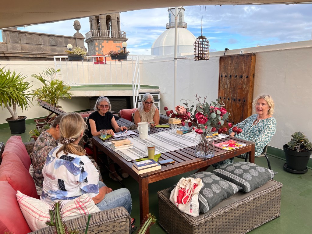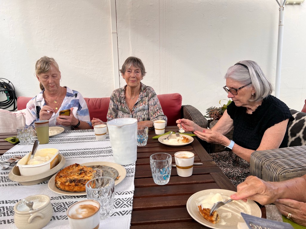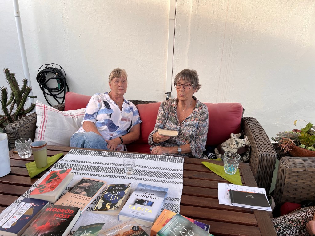 Väl hemma hos Annelie blev vi bjudna på kaffe och en god, hemlagad äpplepaj med vaniljglass innan vi satte igång med att gå igenom våra böcker.