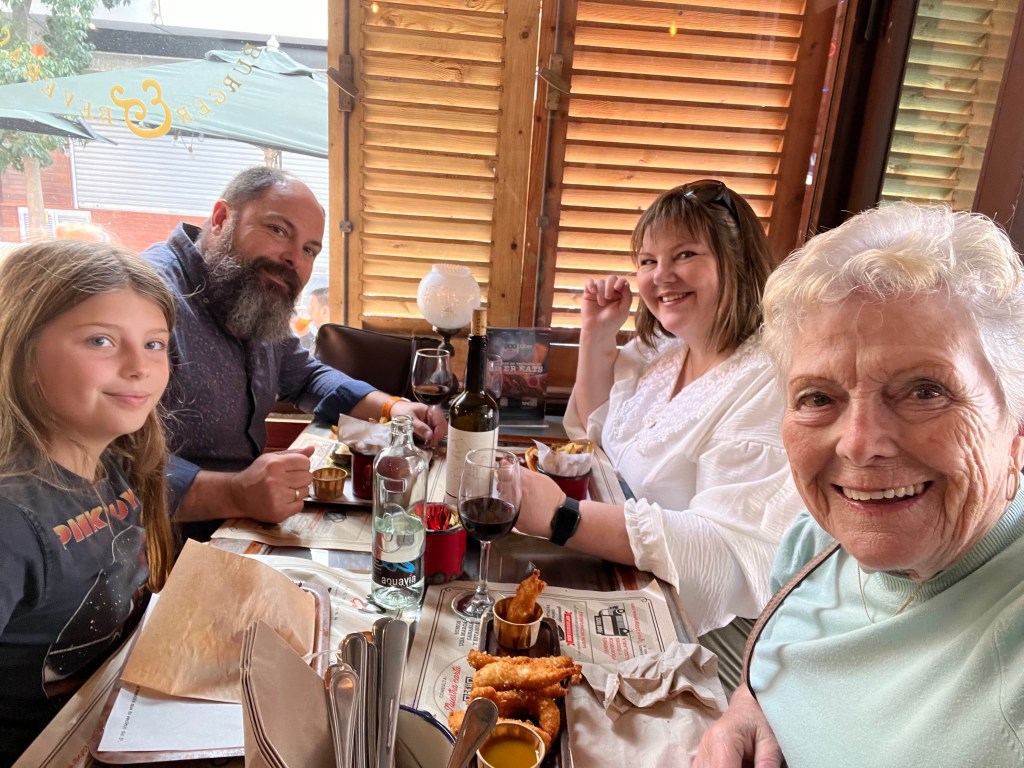 Senare kom Francescas föräldrar och vi åt middag. Fish and chips och en jättegod tårta som Francesca bakat.