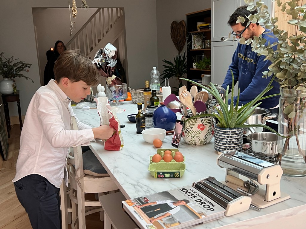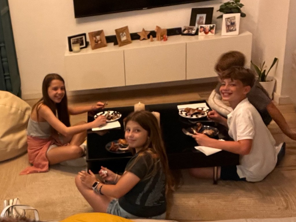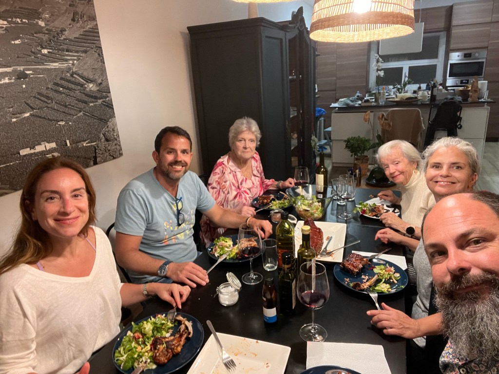 Thomas med familj kom hit tillsammans med mig. Det blev åtskilliga måltider tillsammans med hela familjen.