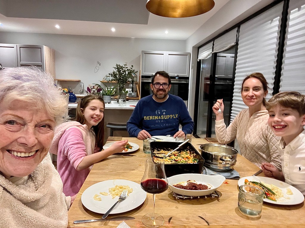 Torsdagsmiddag hemma hos Patrik och Desiree. Dagen därpå reste min engelska familj hem igen. Men med hopp om att snart träffas igen då de till hösten funderar på att bosätta sig här ett år.
