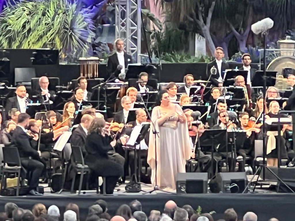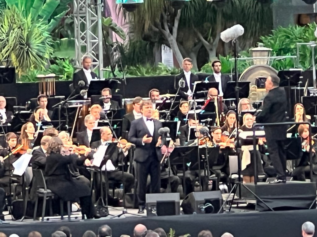 Senare på kvällen träffades Ria och jag för att gå på en konsert i hotell Santa Catalina trädgård Vi kom tidigt så vi hann med en drink i baren innan konserten med Las Palmas filharmoniska orkester under ledning av Karel Mark Chichon och med tenoren Jonas Kaufman och mezzosopranen Anita Rachvelishvili. Tyvärr fick den avbrytas två gånger då det började duggregna.