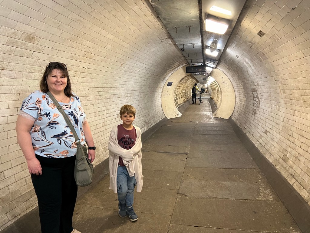Vi började dagen med att ta tunnelbanan till Island Garden och därifrån gick vi UNDER Themsen genom den 370 meter långa gångtunneln till Greenwich.