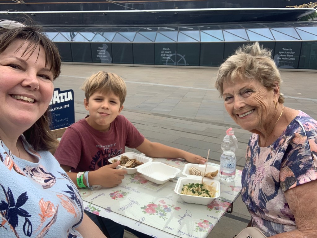 fortsatte vi med båt PÅ Themsen till O2 där Nico besökte Oxigen, ett ställe fullt med studsmattor där han roade sig kungligt i en och en halv timme medan Maria och jag tog en kaffe och tittade på.