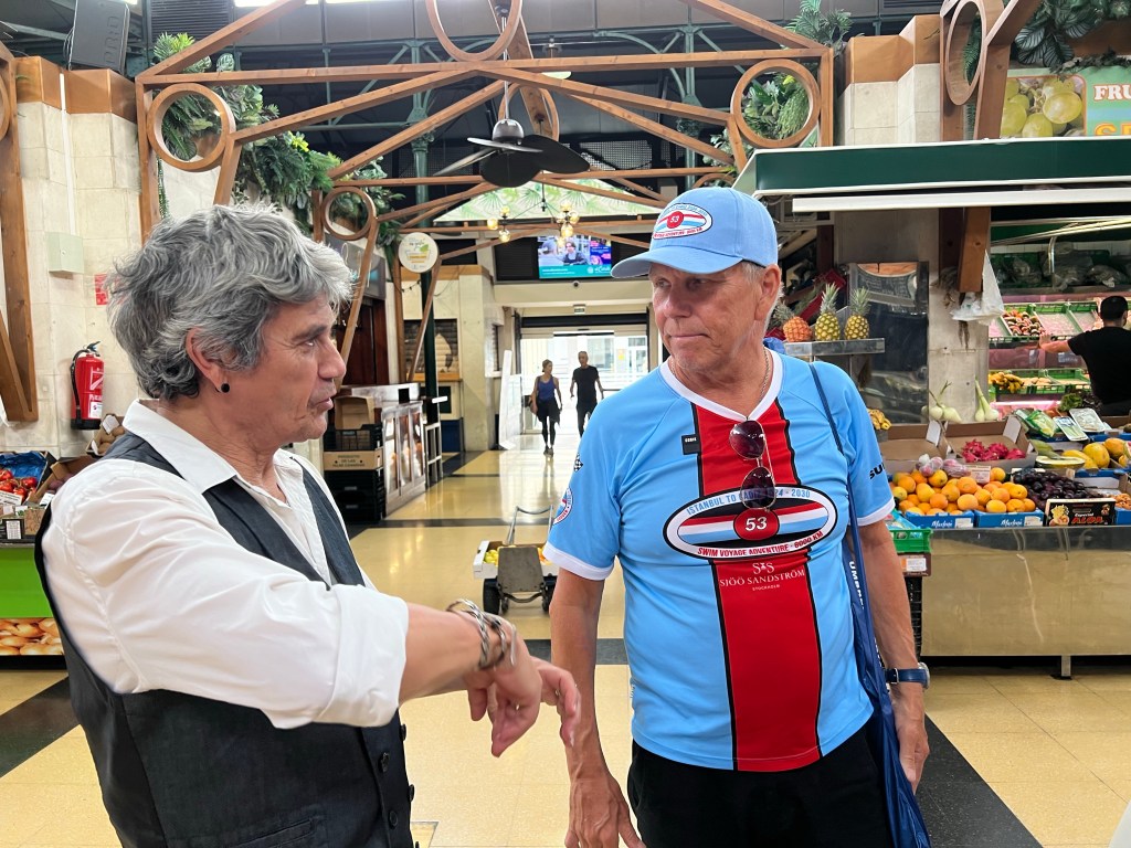 Och här står Miguel och samtalar med den världsberömde Jari Tammi som har simmat från Stockholm till Helsingfors.