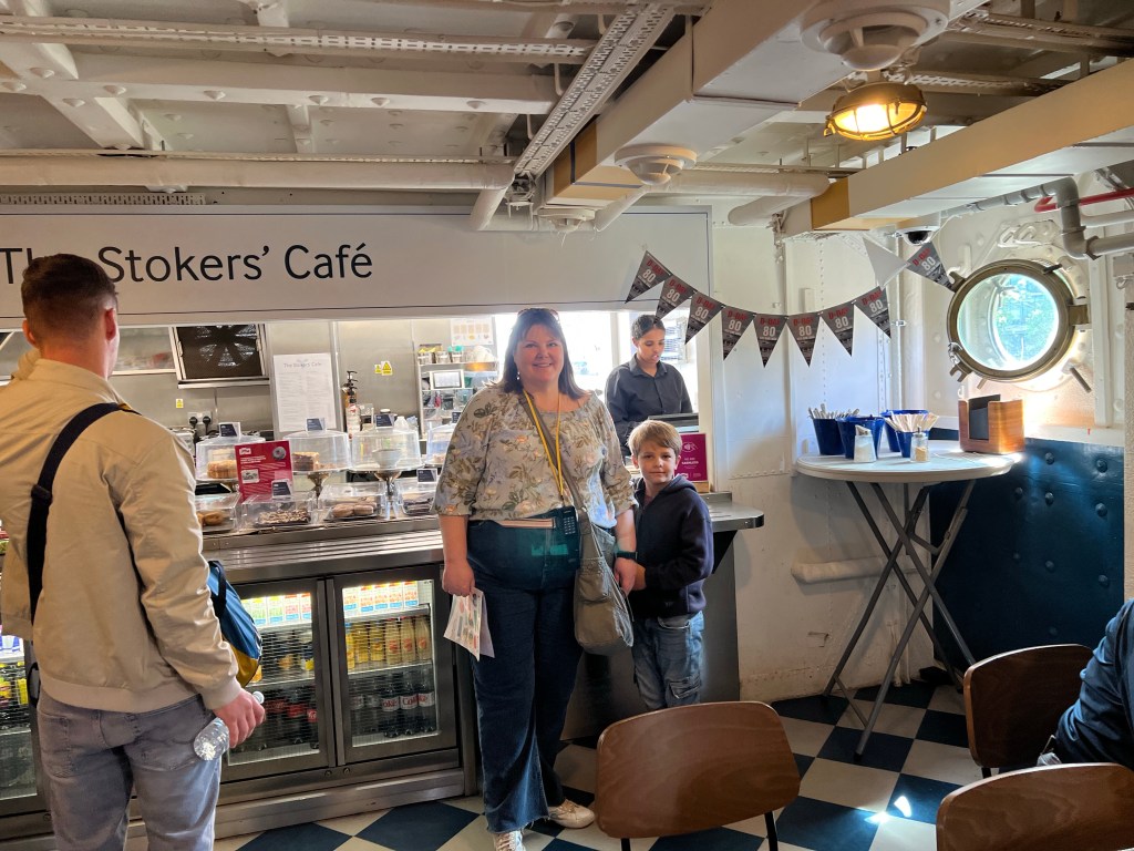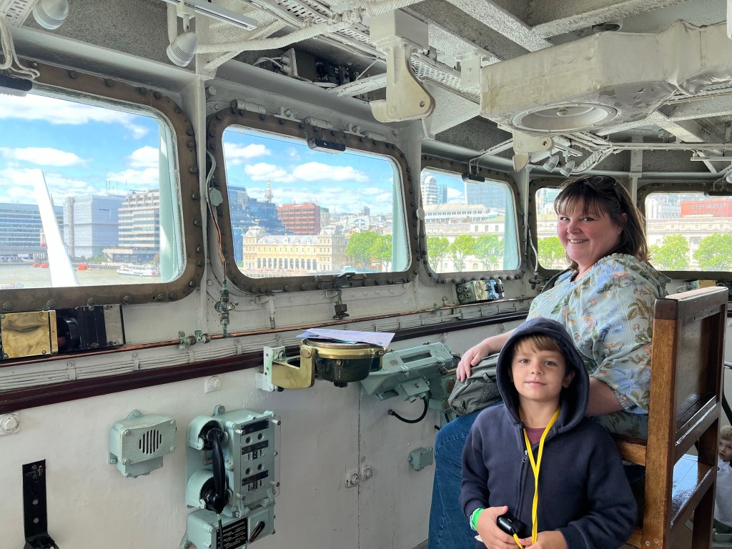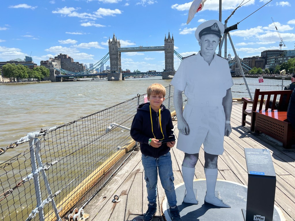 Idag blev det ett besök på HMS Belfast. Drygt två timmar vandrade vi runt på båten. Som tur var fanns det ett café ombord så man kunde vila en stund med en kopp kaffe.