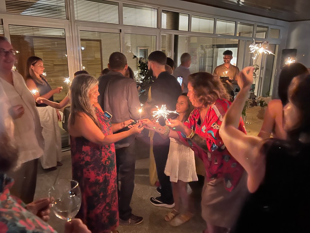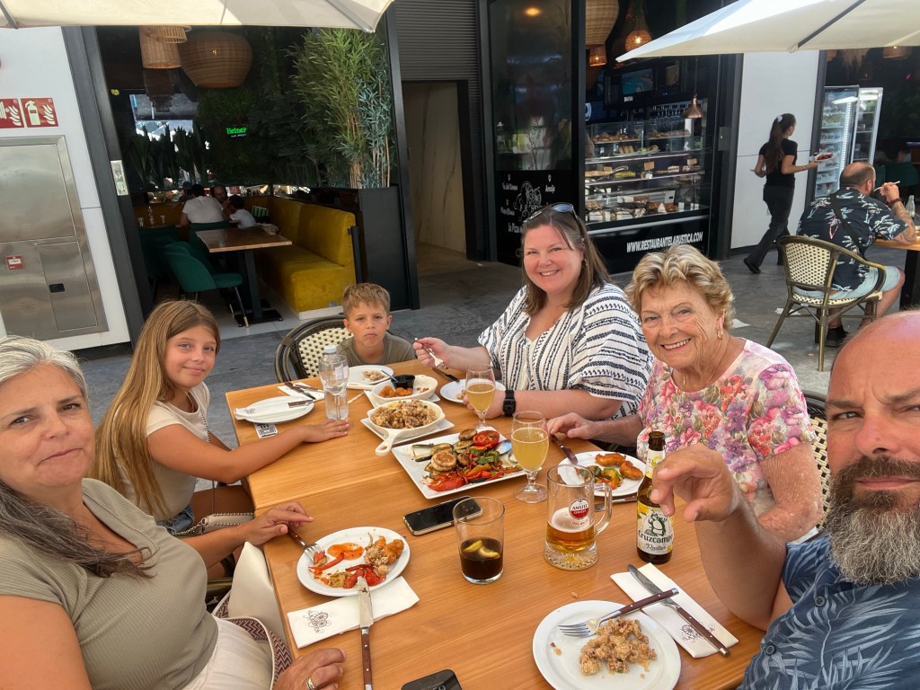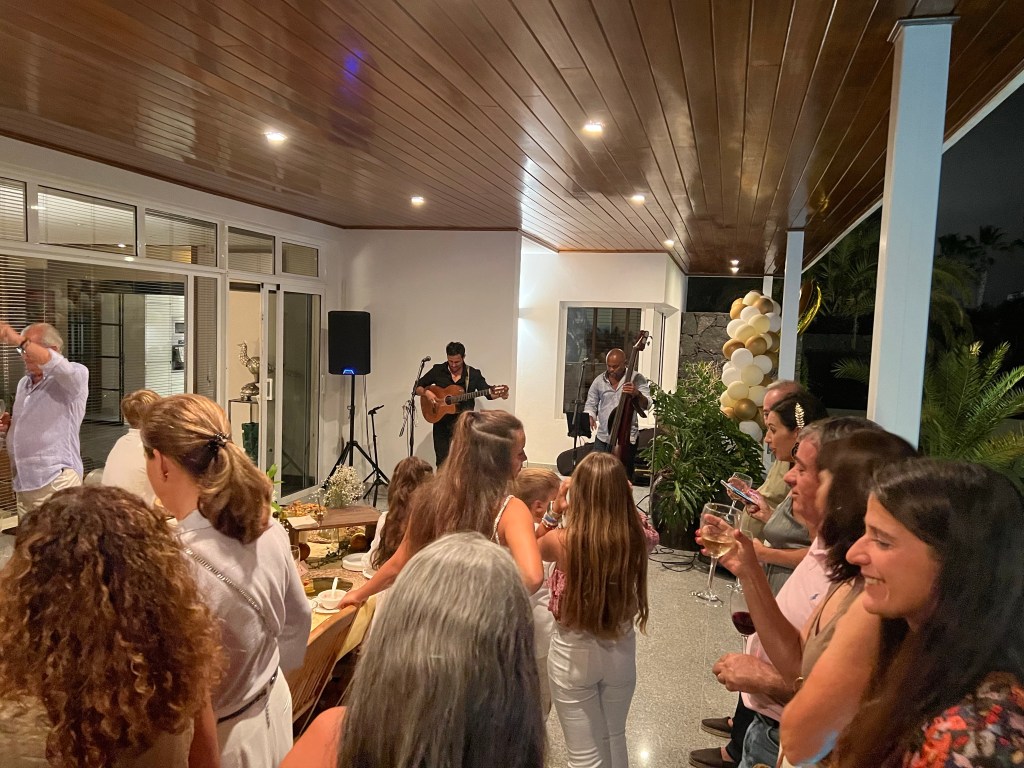 På kvällen samlades vi alla, syskon kusiner, barn och barnbarn, för att hemma hos Luis fira Dolores 60-årsdag.