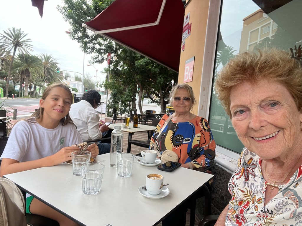 Jag tog en promenad till Ayuntamiento för att träffa tvillingarna när de kommer med skolbussen. Det blev en fika på baren tvärs över gatan med dem och föräldrarna. Sedan följde jag med upp till Tafira där Rafa går en kurs i paddel.