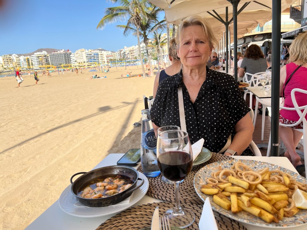 Onsdag tog vi bussen ner till Playa del Inglés för att träffa två väninnor till Marianne och åt lunch nere vid playan bland alla turisterna.