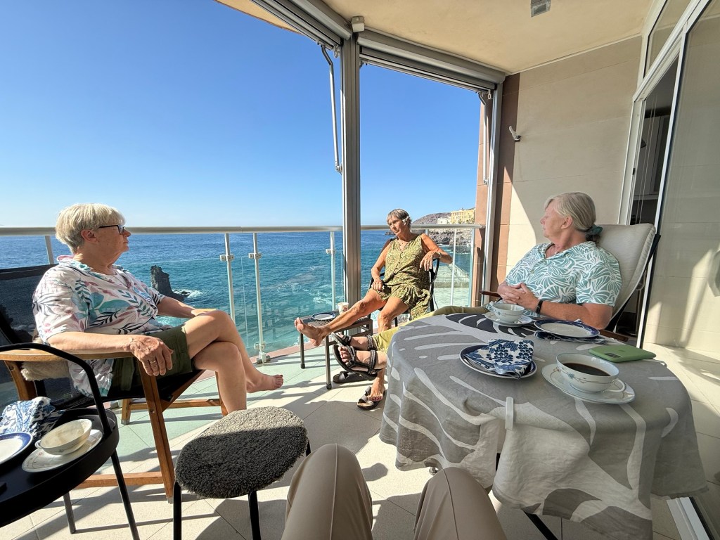Idag var vi, Ria, hennes syster Eva och jag, hembjudna på lunch till Eva. En härlig lunch med gambas al ajillo som förrätt och till kaffet fick vi semla som Ria haft med sig från Café de Paris.