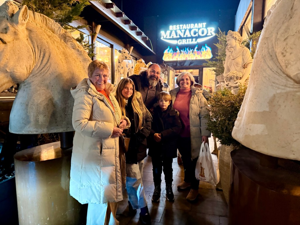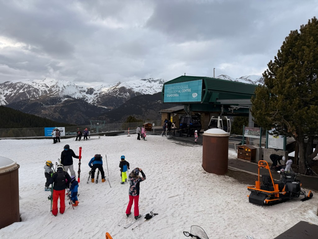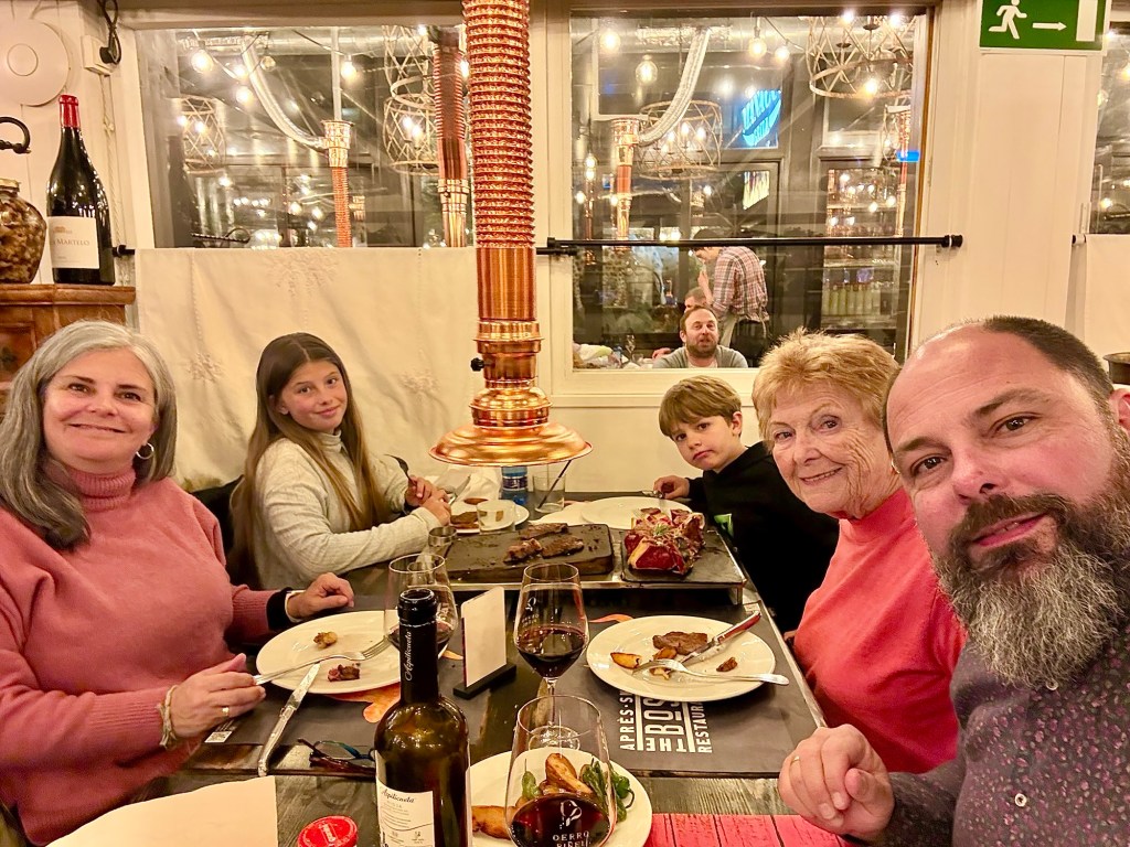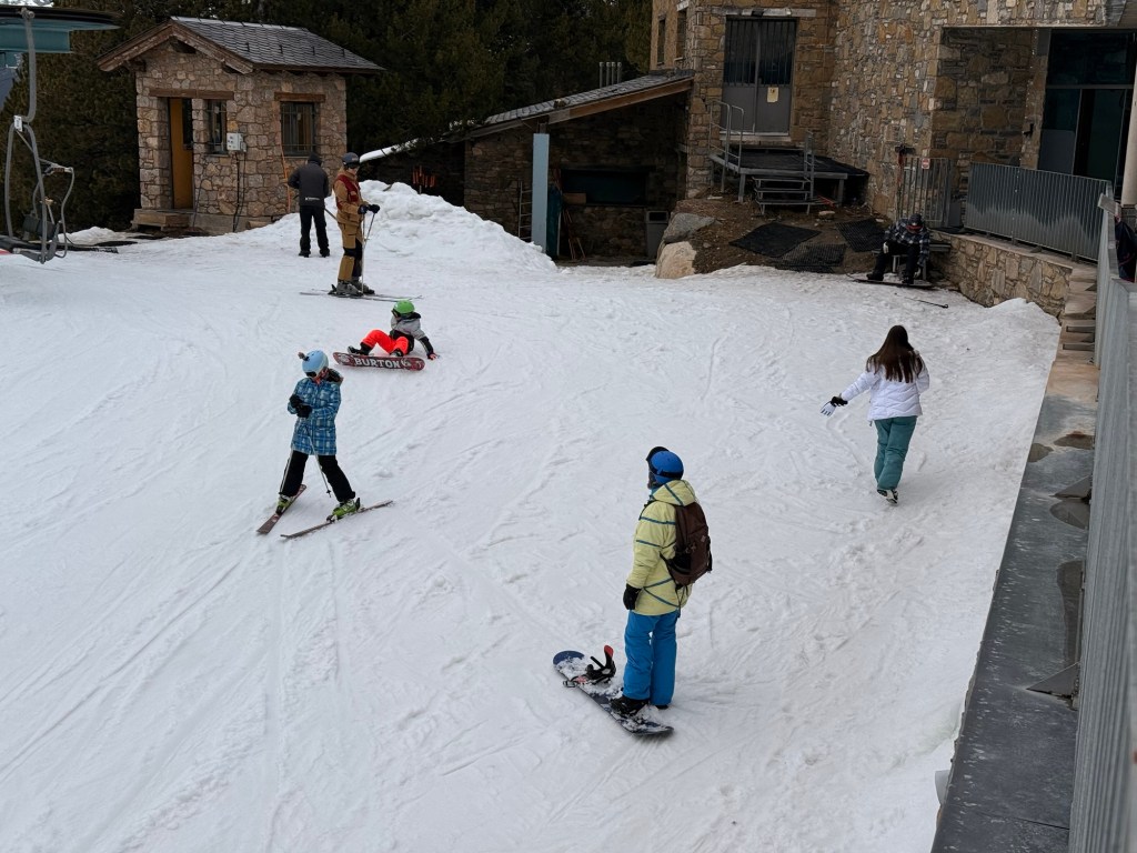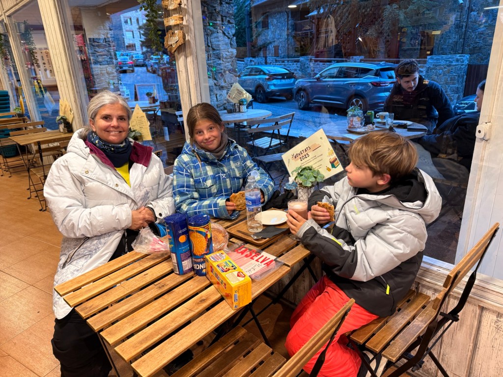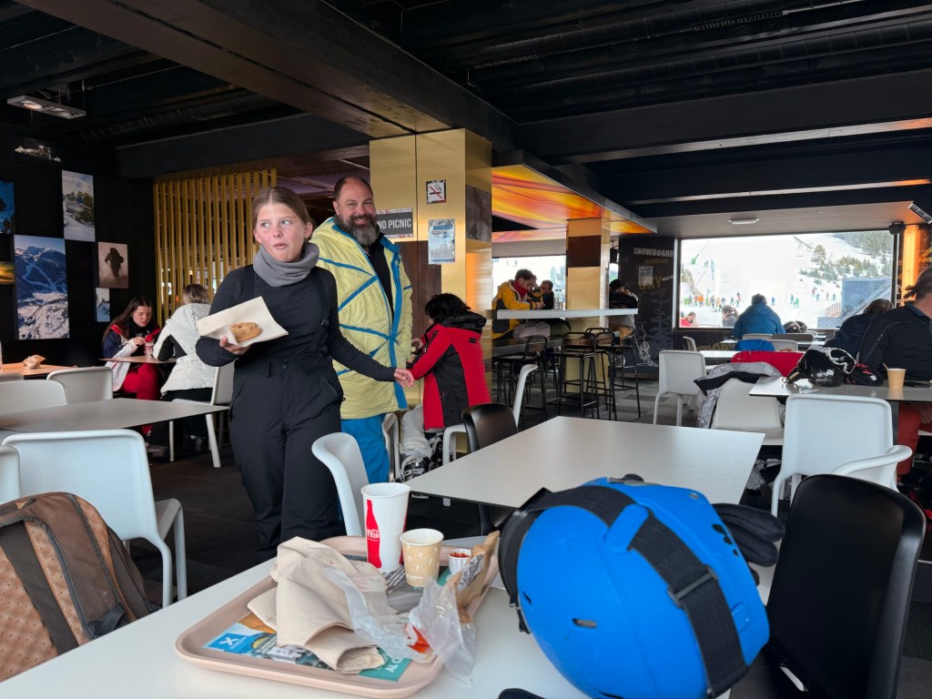 På måndagen tog jag det lugnt, men. Idag tog jag en halvtimmes promenad till linbanan. Väl uppe mötte Patrik och hjälpte mig promenera över snön till en cafeteria där jag träffade resten av familjen.